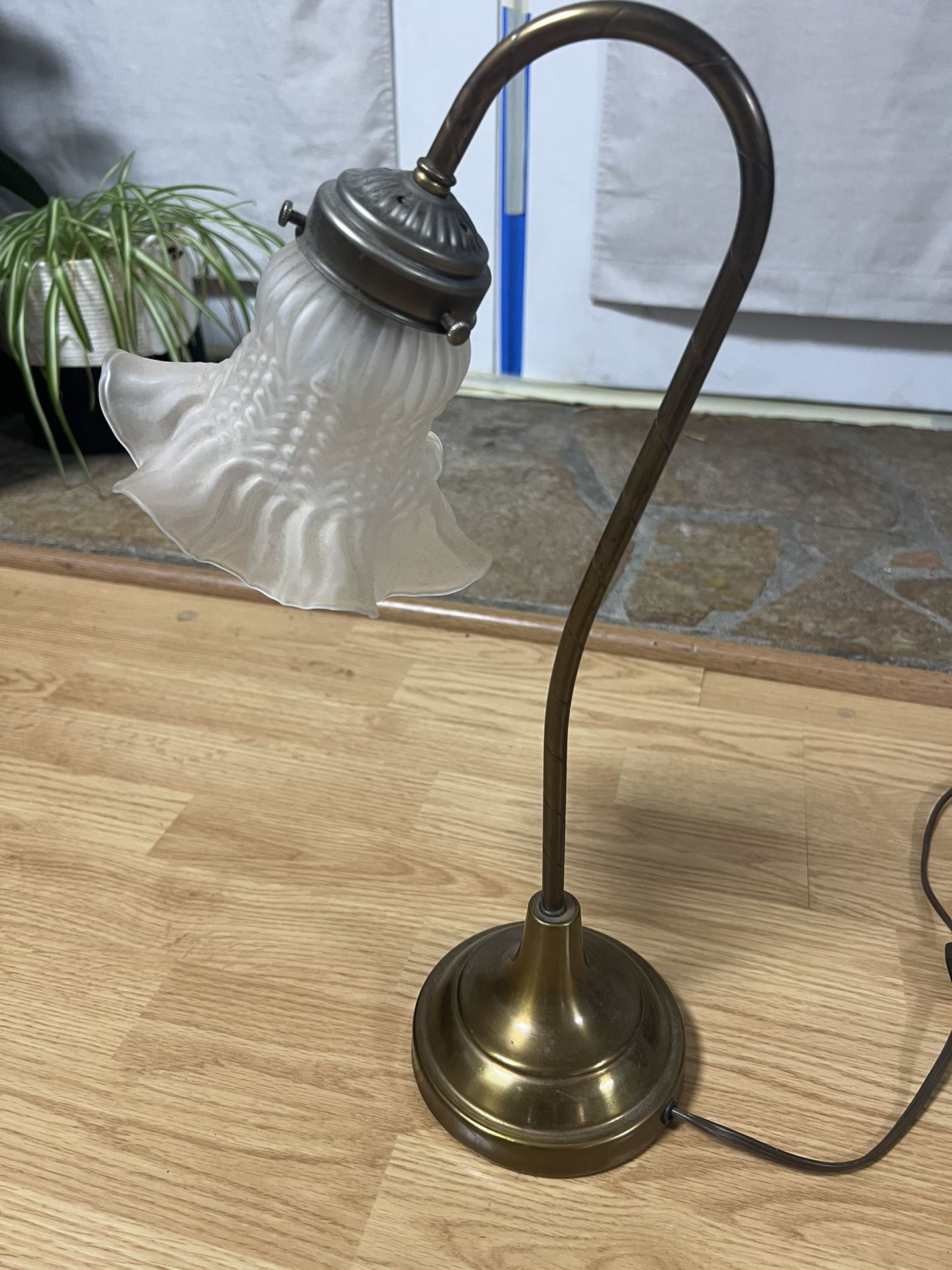 Beautiful Vintage Desk Nightstand Side Table Lamp Glass Flower