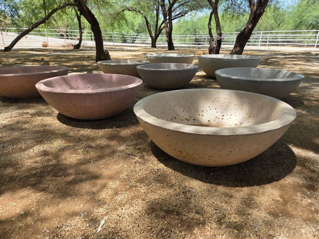 Concrete planter wok bowls 21 inch $120 27 inch $165 33 inch $250 Text for details