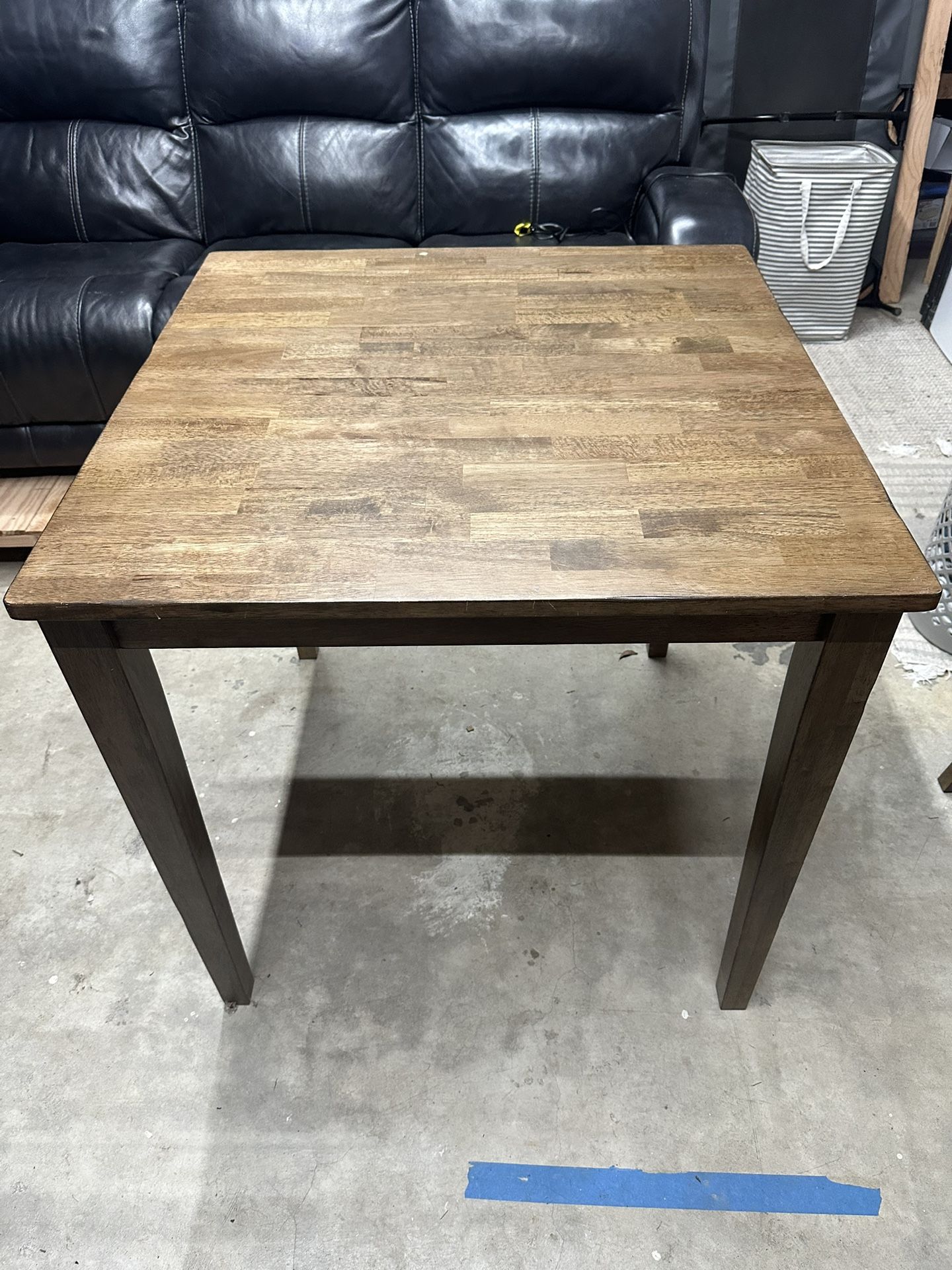 Table and 4 stools. Height is 36 inches. Top is 36 x 36. Bought new for $600. Asking $200. Normal wear. Only one small area where the finish came off. 99% in great condition.