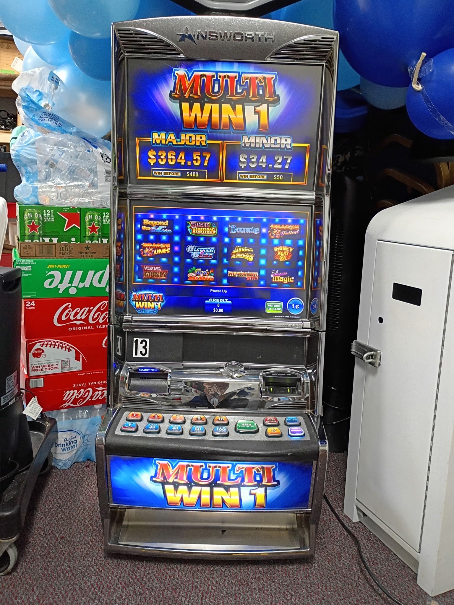 Own Your Own AINSWORTH Video Slot Machine This is a VERY HIGH-END very much sought after slot machine STILL USED in TODAY'S CASINOS! This is the last machine we have left-Don’t wait! IF YOU CAN FIND ONE they typically sell for around $5,000. This Multi Win machine makes a great addition to your game room floor. Ainsworth A560 Slant Top is ultimate in comfort and enhanced visual presentation with two 22 “LCD touch screens. The A560 is equipped with a four-generation QuadTronic processor supporting up to 18 game buttons, easy device access, and high sound quality as technology limits evolve, Ainsworth designs a classically designed cabinet and easy-to-access, easy-to-use setup menus. Estimated manufacture date: 2013-2017 Approximate dimensions: 22"w x 20"d x 54"t weight: 350 Lbs.