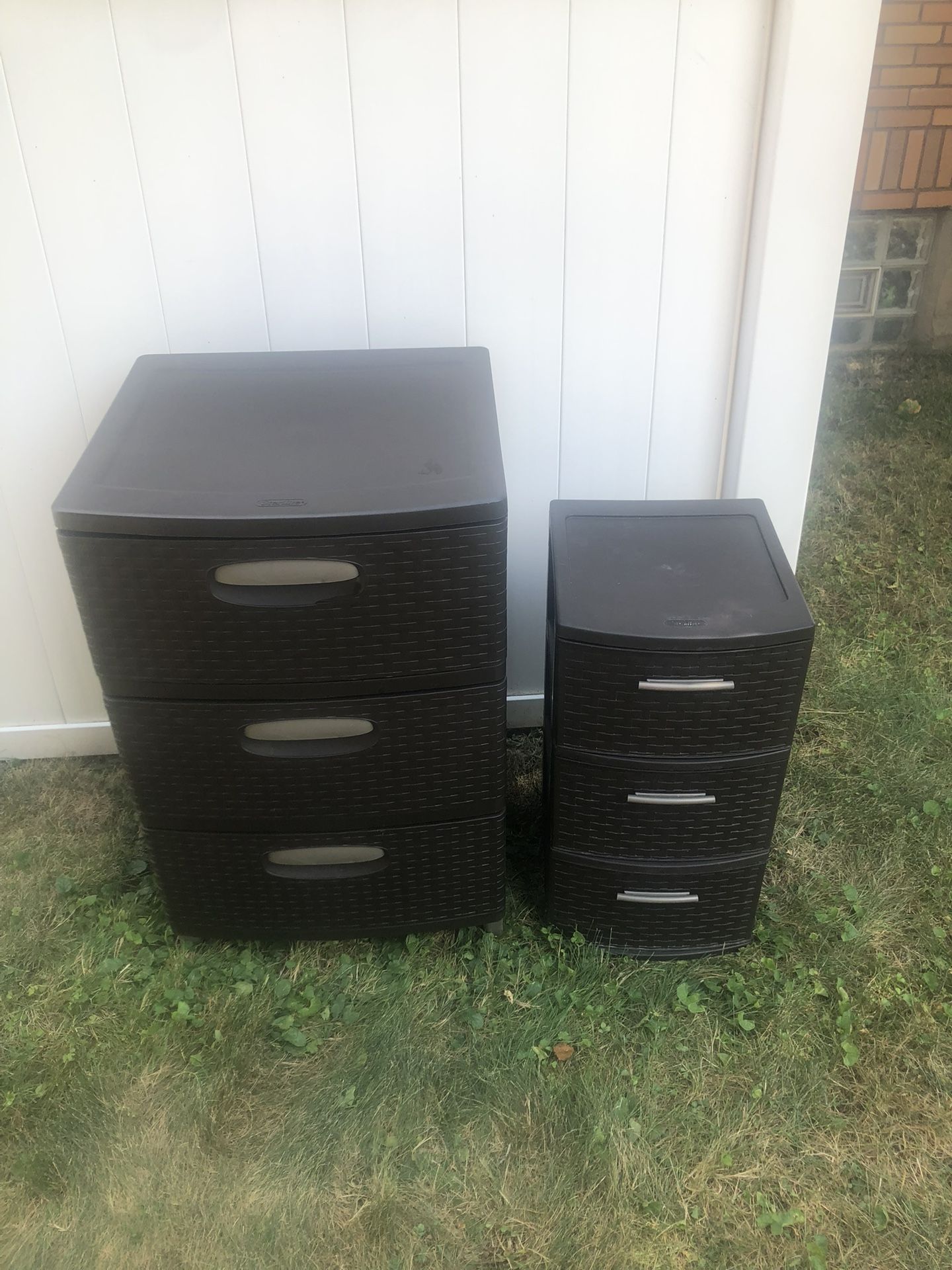 2 wide weave Sterilite storage drawers. Espresso Brown. Large Size 20 x 19 x 32 with legs. Medium Size 12.5 x 14 x 24. Ross Township pick up only ZIP Code 15229. Cash only.