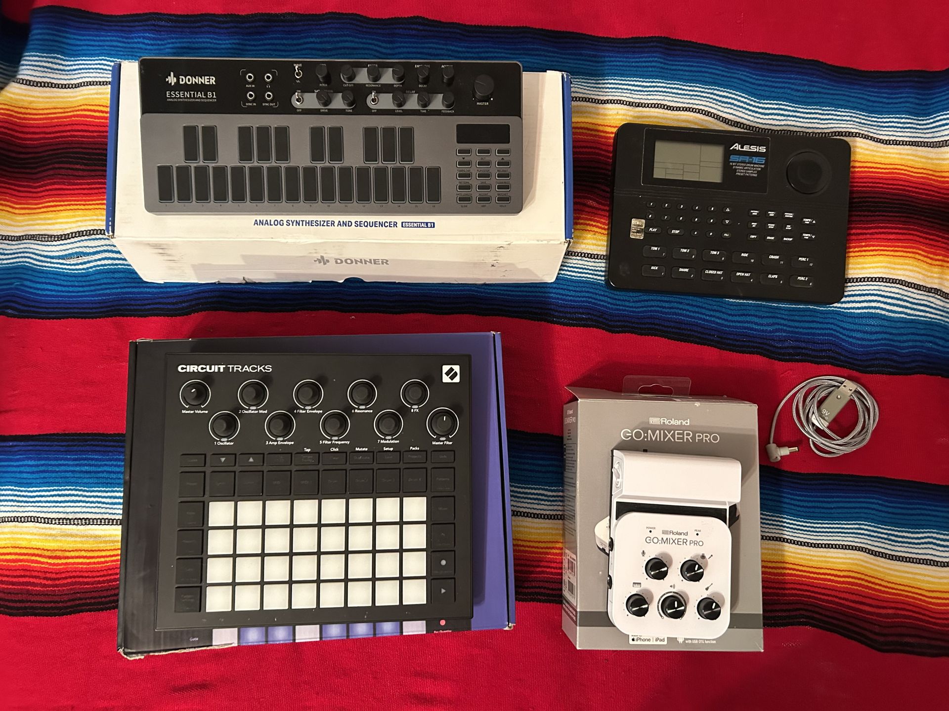 Novation circuit tracks with box and Decksaver. Switched to a 707 for workflow, great sounds and capabilities for a small module. $270 Donner B1 bass synth with original box. Great at your fingertips bass sounds, killer for quick sounds and on the fly acid. $85 Roland Go Mixer pro with original packaging and box. Great for streaming, studio and on the go. Ideal for live streaming and portable interface. $80 Alesis SR-16 drum machine (the legend) a base for any musician, if you don’t have one, buy one of mine, I have two.😹 $50 Can deliver to the Seattle or Portland area. All reasonable offers accepted. May consider trade for Elektron, dread box, a Roland tr6s, or a black 37 Arturia Keystep. Korg, Roland, Arturia, Moog, Behringer.