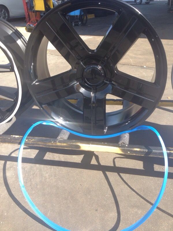 26" Chevy black rims , tires, installed $1600 at Dtown tires. 1504 s. Westmoreland. 214. 337. 74 72