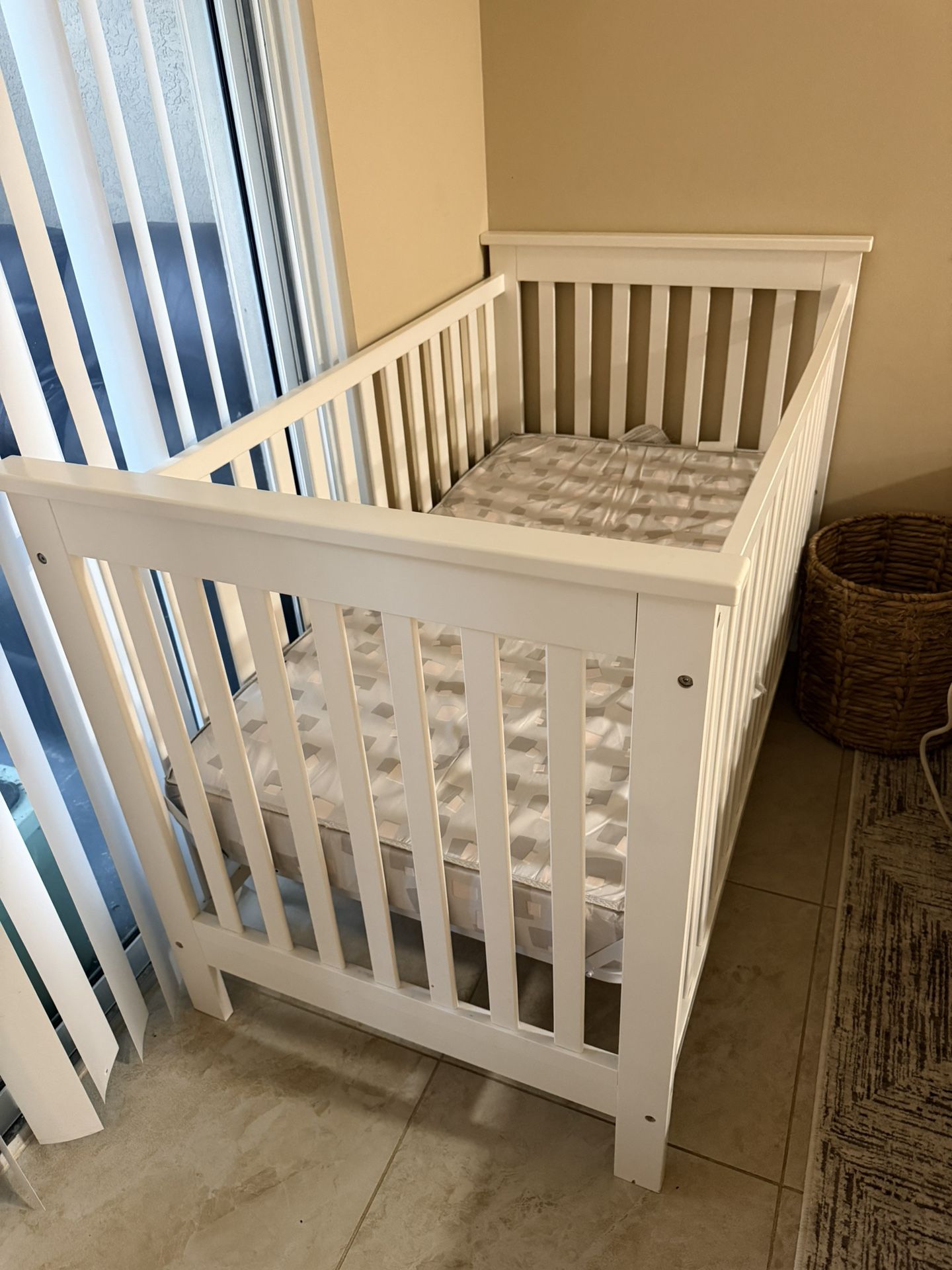 Free, it has been used 6/10. Good conditions, small chipping on some parts of wood & mattress has some rips from changing the sheets but other than that it’s in good conditions. Pick up required.