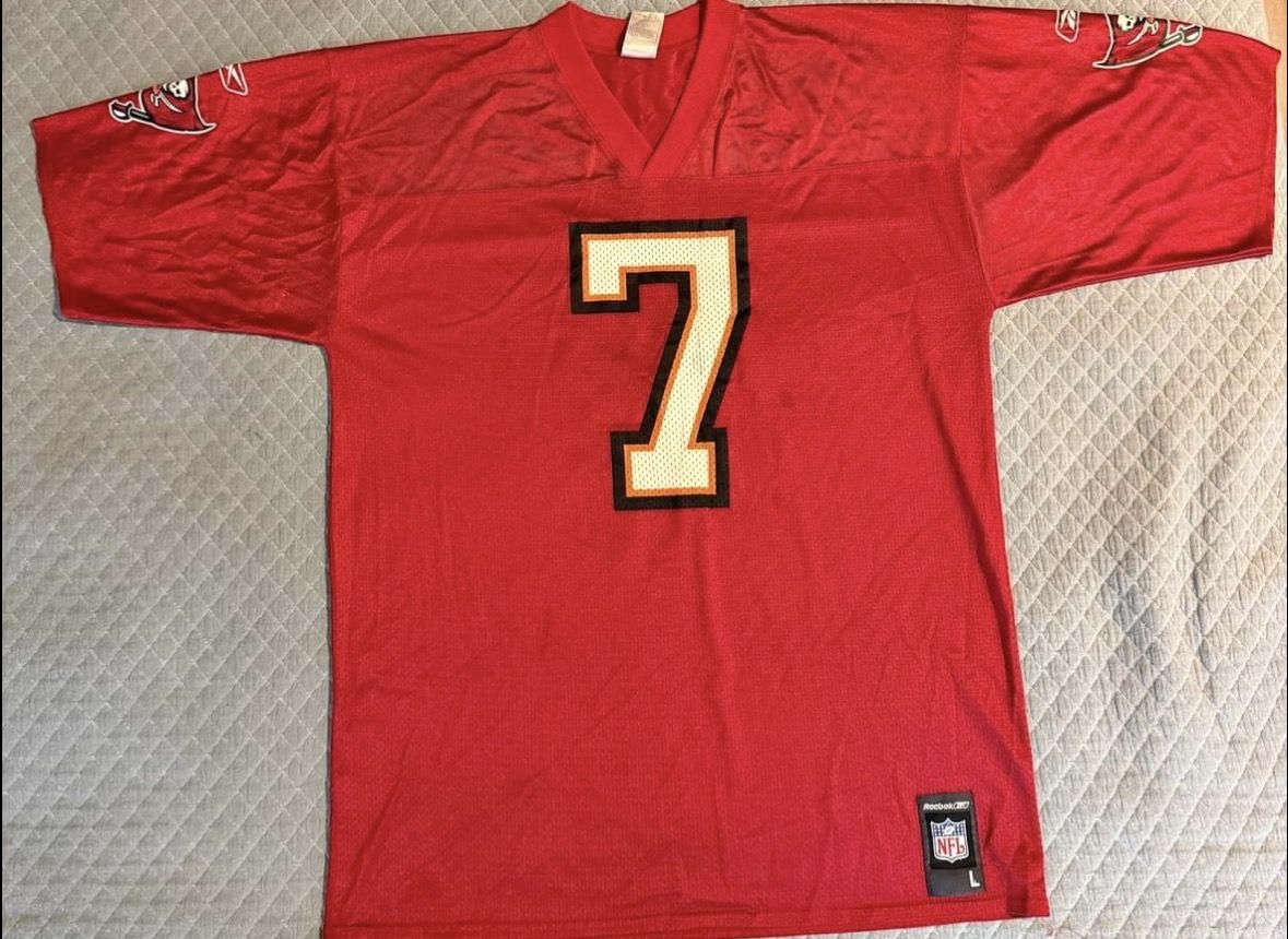 Tampa Bay Buccaneers #7 Garcia jersey Reebok Official NFL Size Large (L) Classic red Bucs jersey Screen printed numbers and name Team logos on sleeves Great for game day ππ₯ Good pre-owned condition Some minor wear on numbers (see photos) π² $45 π Pickup in Katy 77494 Cash