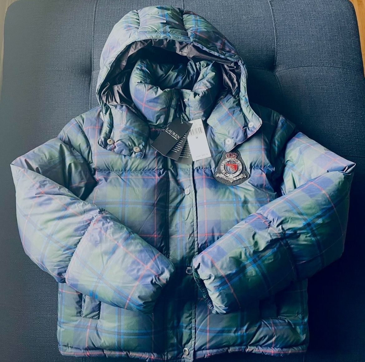This Polo Ralph Lauren Women's Plaid Beaded-Crest Down Jacket in size M is a stylish and classic addition to any winter or fall wardrobe. The jacket features a green plaid pattern with beaded accents, a zip and snap closure, and is insulated with cozy down material. With a puffer jacket style and designer brand, this jacket is perfect for casual occasions during the holiday season or regular winter days. The classic and timeless design makes it a versatile piece that can be worn year after year.