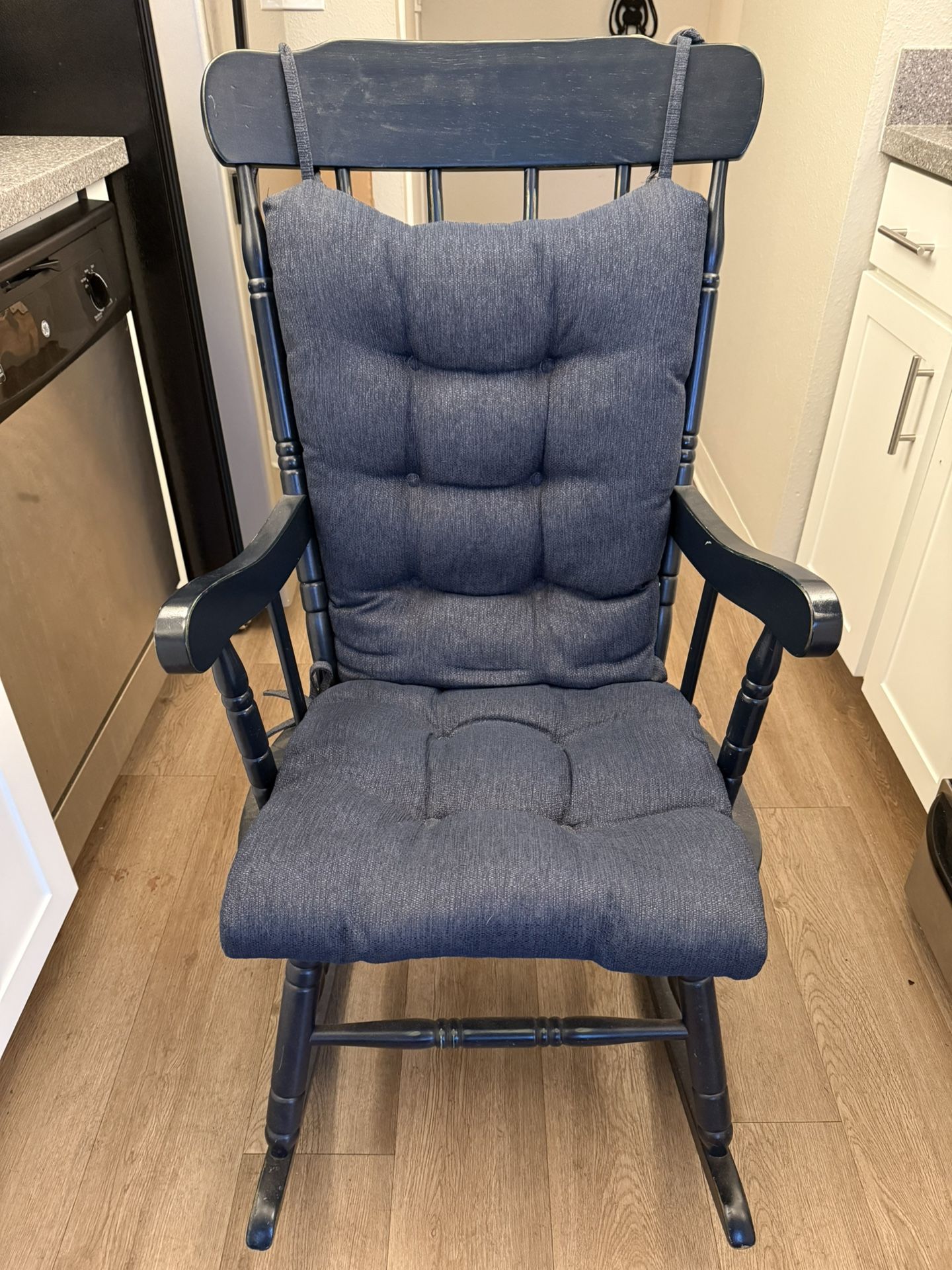 I have a very nice blue colored rocking chair up for Free! Come pick it up If you have any questions, please let me know. Pick up and cash only please. I appreciate you looking. Make it a great day!