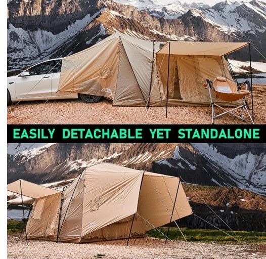 ACtent for Tesla Model 3&Y, Pop-Up SUV Tent w. Awning for Car Camping, Connects to Tesla Tailgate for Air-Conditioning, Sleeps 4 Adults,