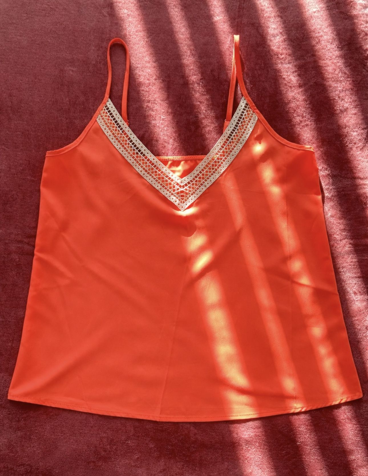 Orange cami top with lace trim #loungewear #summer Super pretty and flowy for a whimsy look ✨🧡✨