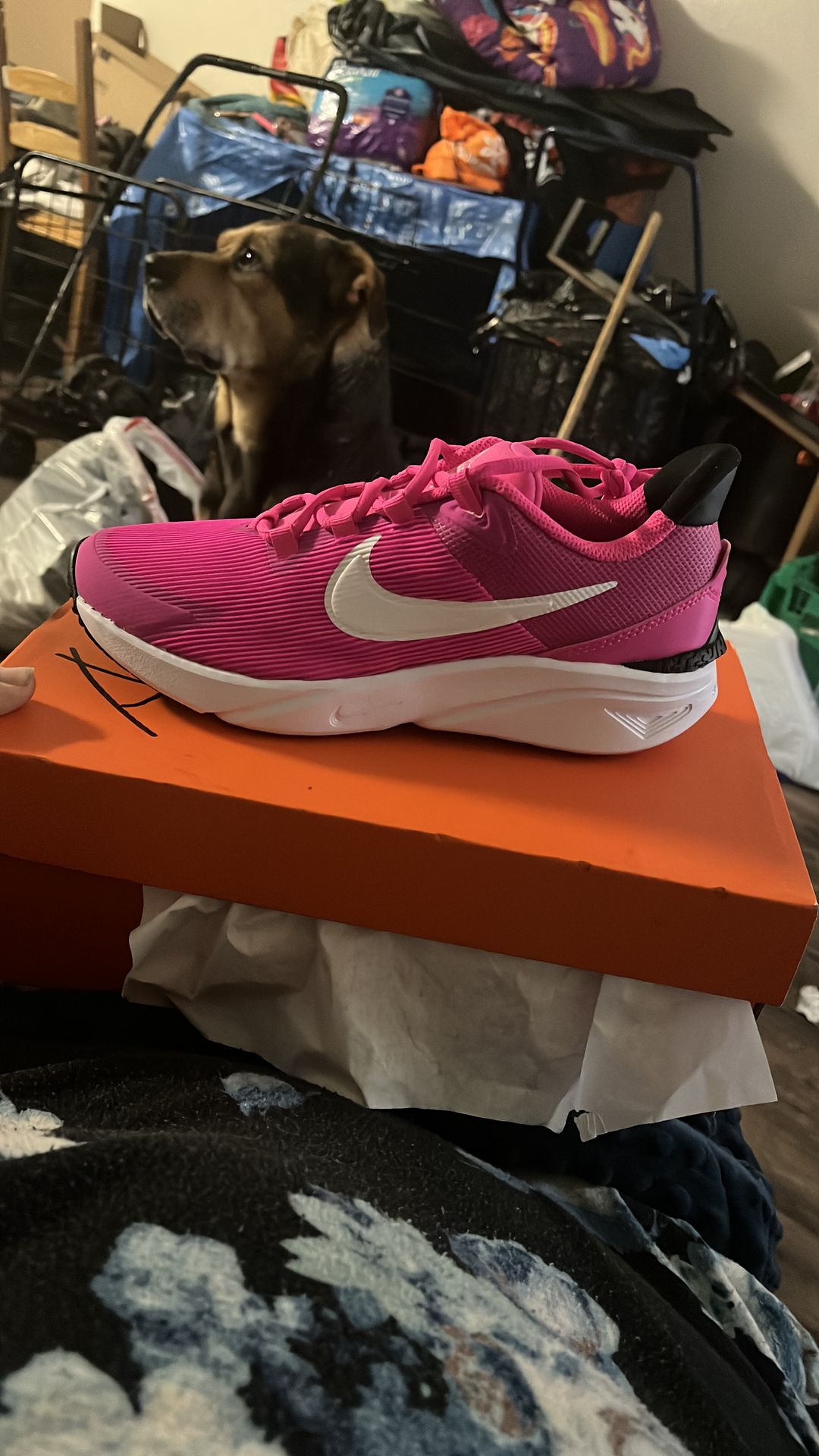 Brand new never worn size 5 youth, pink Nikes for girls as is must pick up