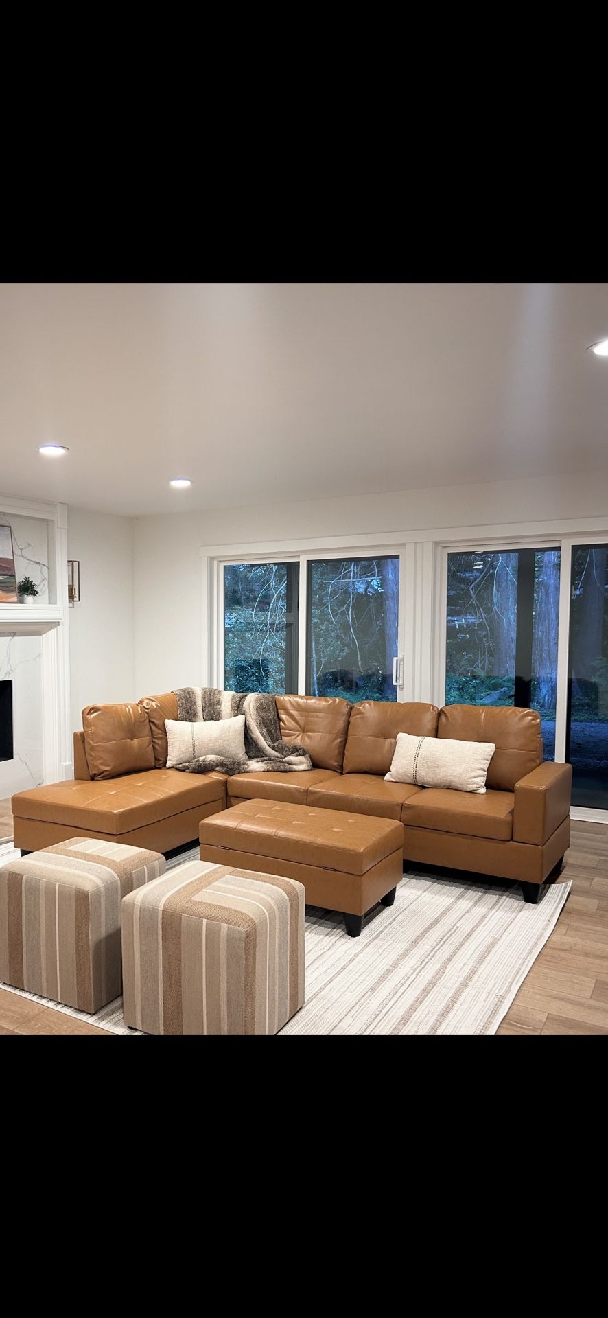 Sectional sofa couch and ottoman Brand new still in packaging this is display picture with decorative pillows and storage ottoman included Delivery to all areas