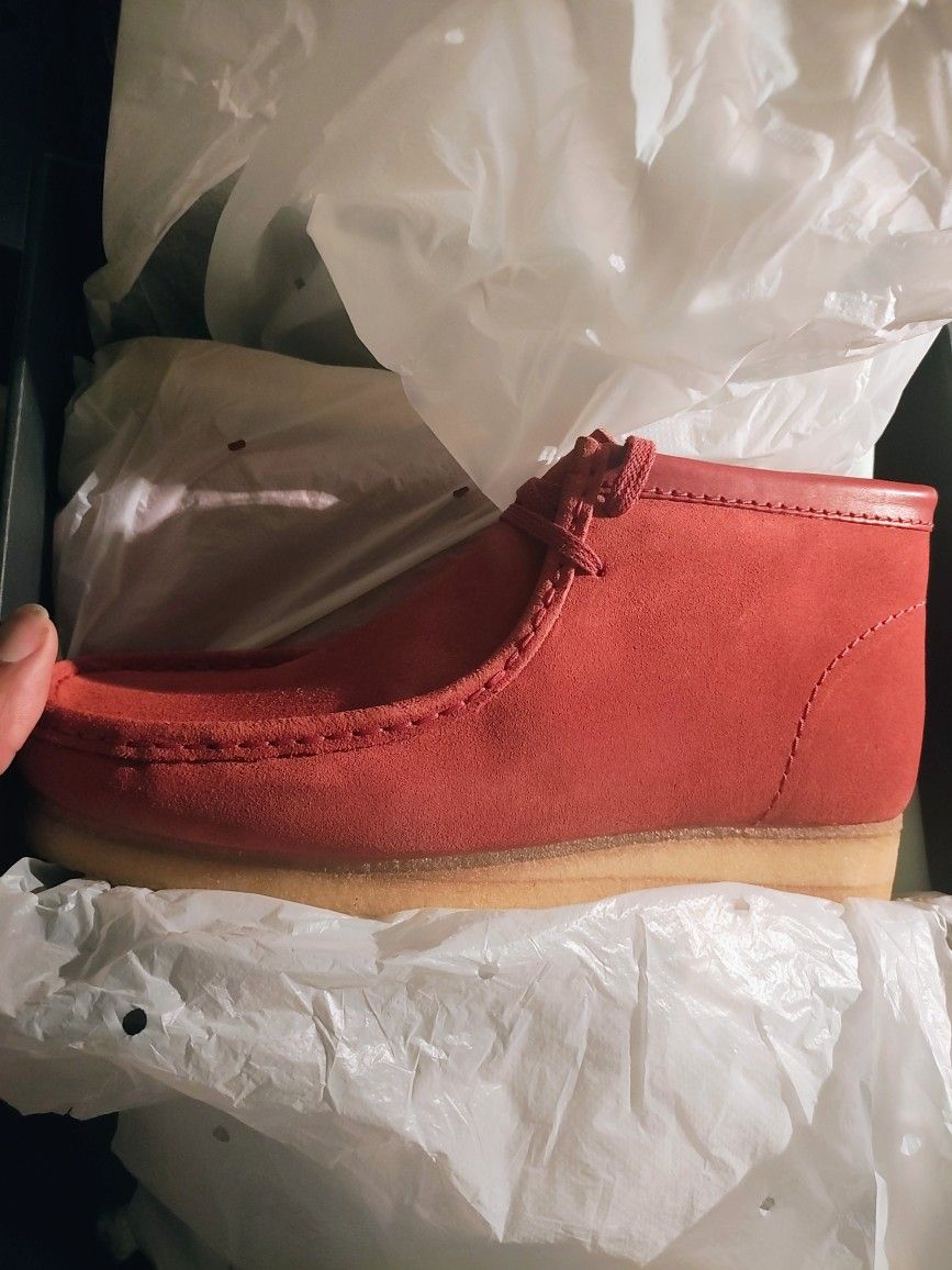 Up for Sale I have a Brand New Clarks Wallabies Chili 🌶️ Limited Edition. Size 10.5 Available. Very nice. Serious buyers only. On sale for only $200
