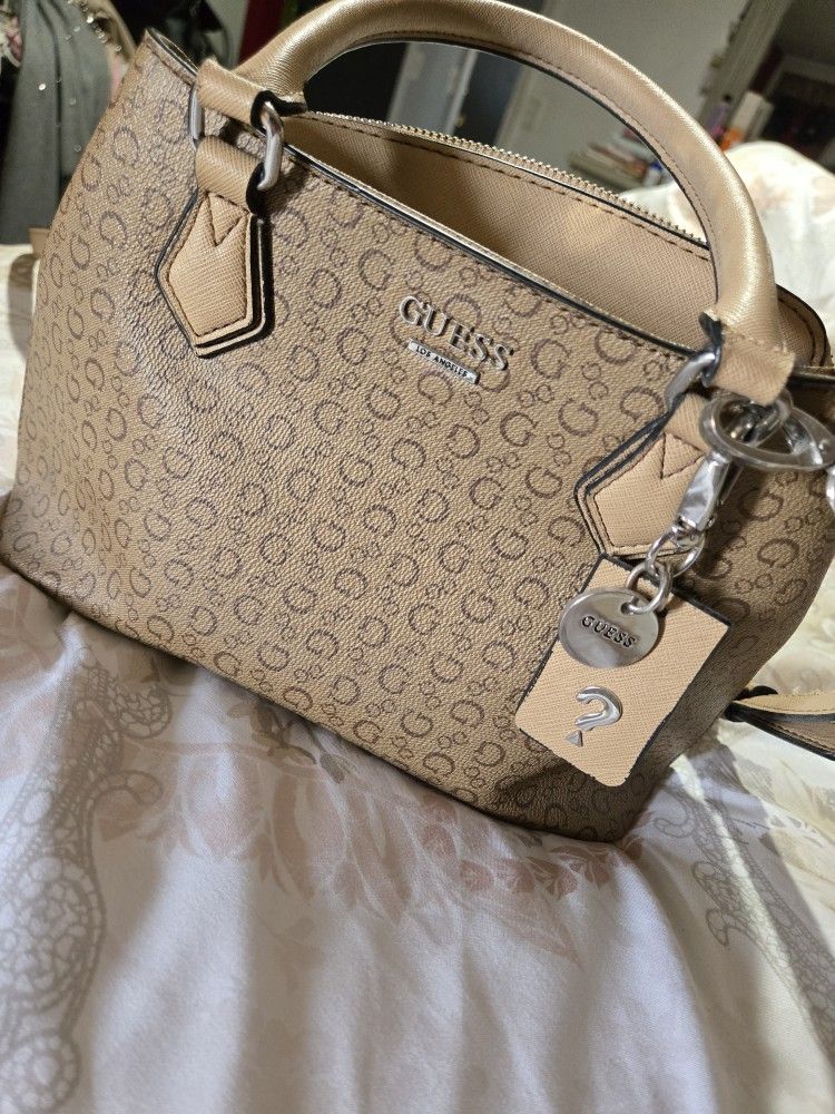 I have this cute brown guess crossbody purse that was used but still in good condition and the zipper inside works good.
