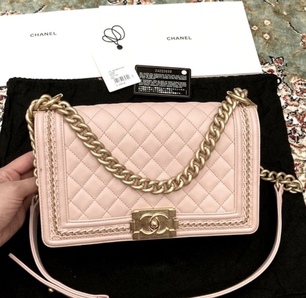 100% authentic Chanel Boy Bag Lambskin leather Gold hardware No signs of damage or wear Original box, dust bag, and receipt are included