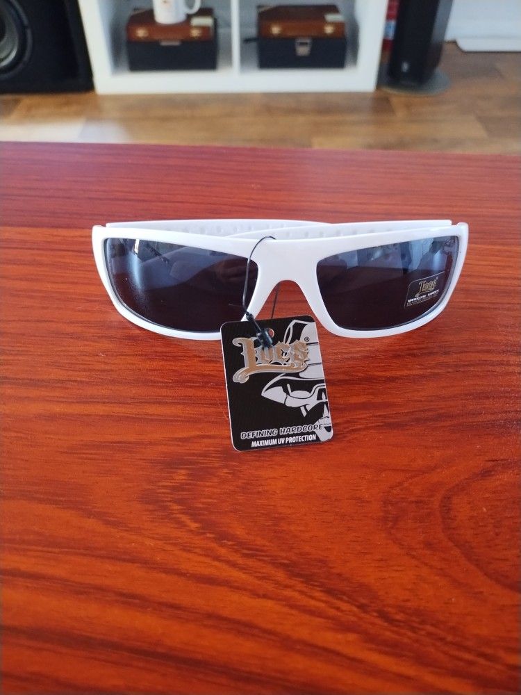 This listing is for a pair of locs sunglasses they are white with bandana trim in Black. Brand new never used only took out a packaging to take a picture
