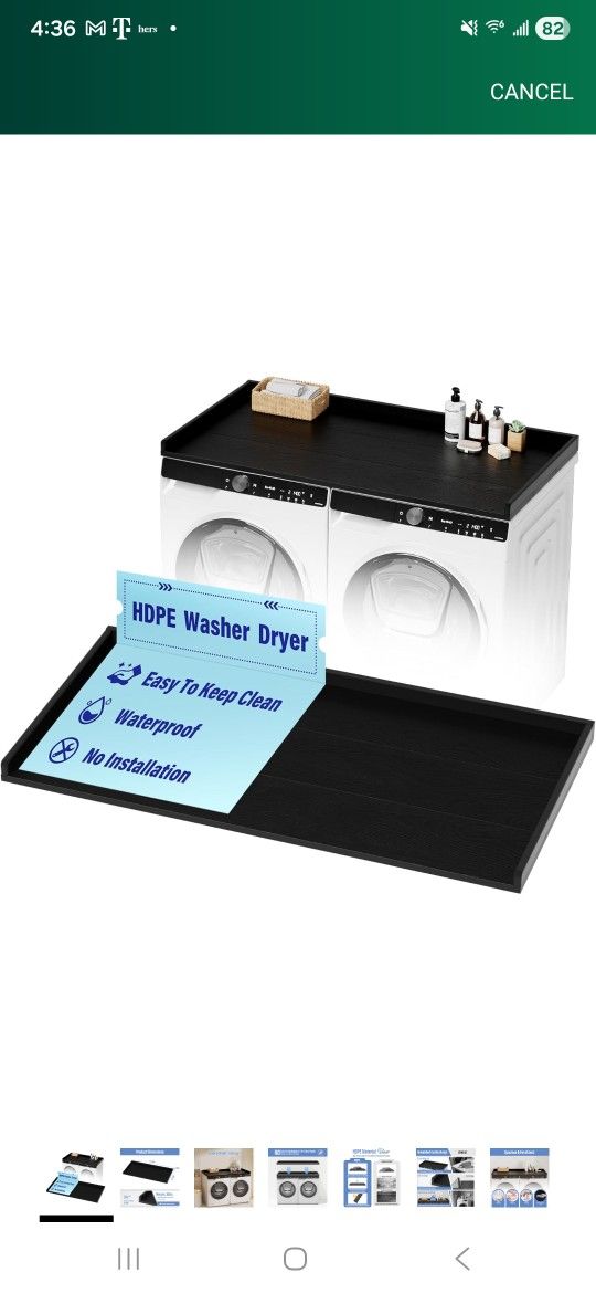 LEBENGURU washer dryer countertop is made of HDPE material, which has low water absorption relative to wood and is not easy to mold and swell. This material also has high rigidity and toughness which is not easy to deform, and we use drop-resistant packaging to minimize product damage during transportation. HDPE laundry topper is heat-resistant, waterproof and easy to clean, making it a reliable choice for laundry rooms No Installation Required: With no complicated tools or lengthy instructions, this washer dryer topper fits perfectly on top of your washer and dryer. Simply unpack and ready to use. No need for you to struggle to install and free your hands. Saves you time and effort while instantly improving the functionality of your laundry room Unmatched Quality Design: Three sides of 2-inch high safety rails provide protection without worrying about items falling into the crevices. Thoughtful rounded corners not only enhance the appearance, but also ensure safety. Our washer dryer top protector have high tensile strength and impact resistance which can withstand up to 200 pounds of heavy loads.Proper weight reduces displacement and vibration when running the washer and dryer Maximize laundry room space: The laundry drying countertop provides ample space for your small items and storing detergent. Once your clothes are finished drying, you can fold and iron them directly on the countertop, making your laundry process more efficient and organized without having to carry your clothes over and over again, making it the perfect solution for creating extra storage and workspace in your laundry room Stylish laundry organization: Black and white 2 colors for simplicity. With a faux wood grain, this HDPE panel's chic design complements existing furniture styles, turning your laundry space into an organized one while adding a modern and stylish touch to balconies, laundry rooms, bathrooms and more. It is also eco-friendly, heat resistant and easy to maintain, ensuring that it will be a laundry room staple for years to come