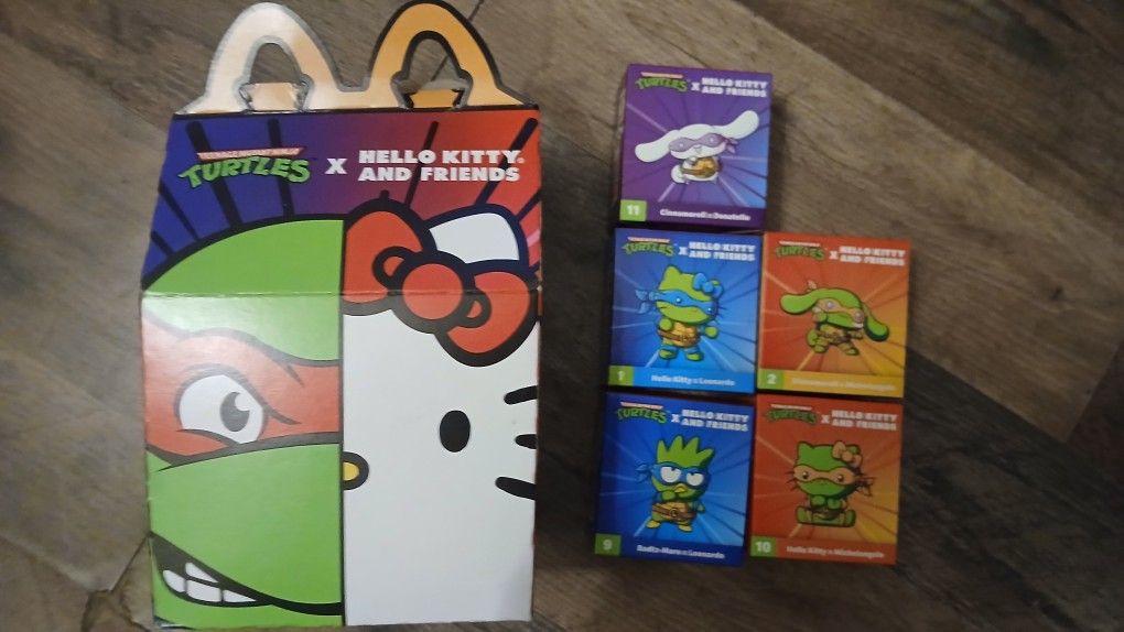 New never open Hello kitty collaboration with MCDONALD'S and NINJA TURTLES. 5 toys all new. Comes with a big happy meal box . 15 $ each.