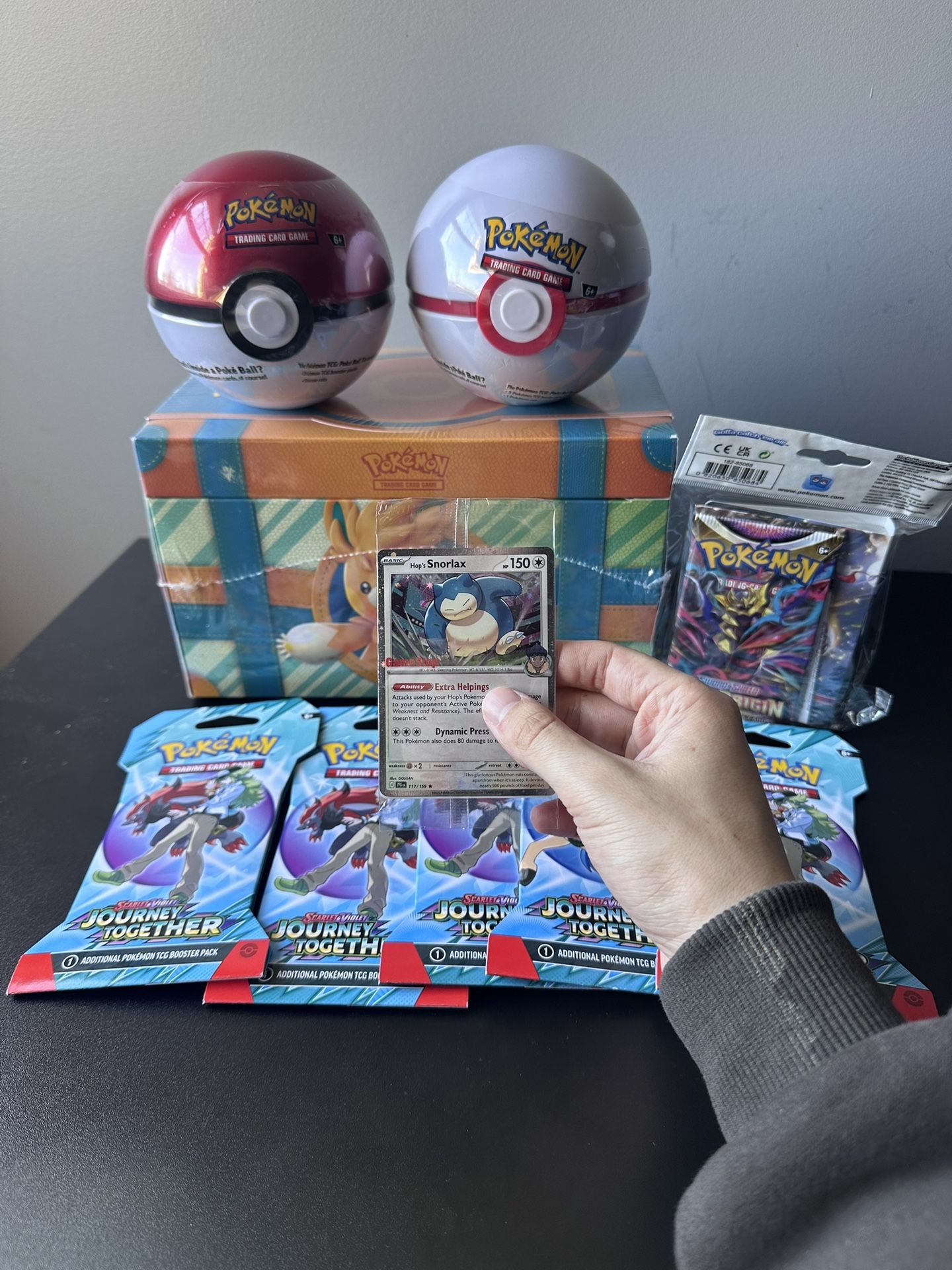 The Best Easter Gift 🥚 18 packs! Including a rare gamestop exclusive promo card + a mini binder and much more! Pokemon Journey Together Packs (5) Pokemon Pokeball Tins with 3 packs each (2) GameStop Snorlax Promo Pokemon lost origins pack + mini binder Pokemon Paldea Chest with 6 packs