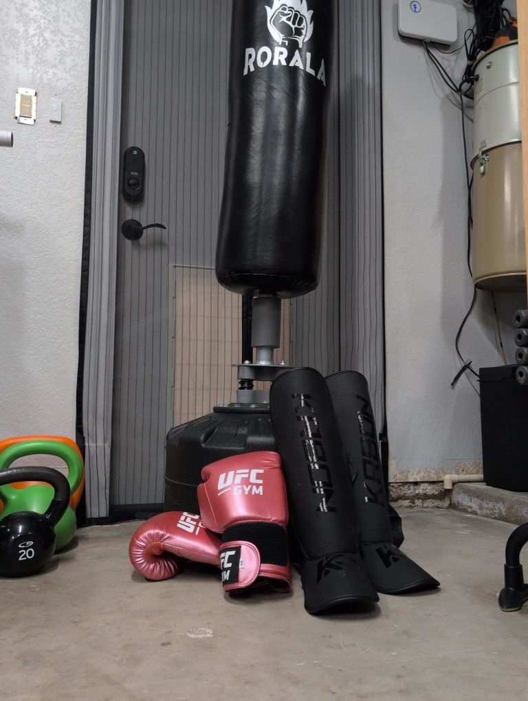 Selling a complete striking setup as a package—perfect for kickboxing, Muay Thai, MMA, or home gym training. Included in the bundle: Freestanding heavy bag (RORALA) with weighted base Pair of UFC Gym boxing gloves (red) Pair of KRABON shin guards (black) Condition: Clean and in good shape with normal light wear from use. Great starter or upgrade bundle—everything you need to get training right away. **Retail value new is roughly $300–$450 for the set; priced as a used bundle for a quick, fair sale.** **Priced to sell today—bundle only. The first person who can pick it up gets it.**