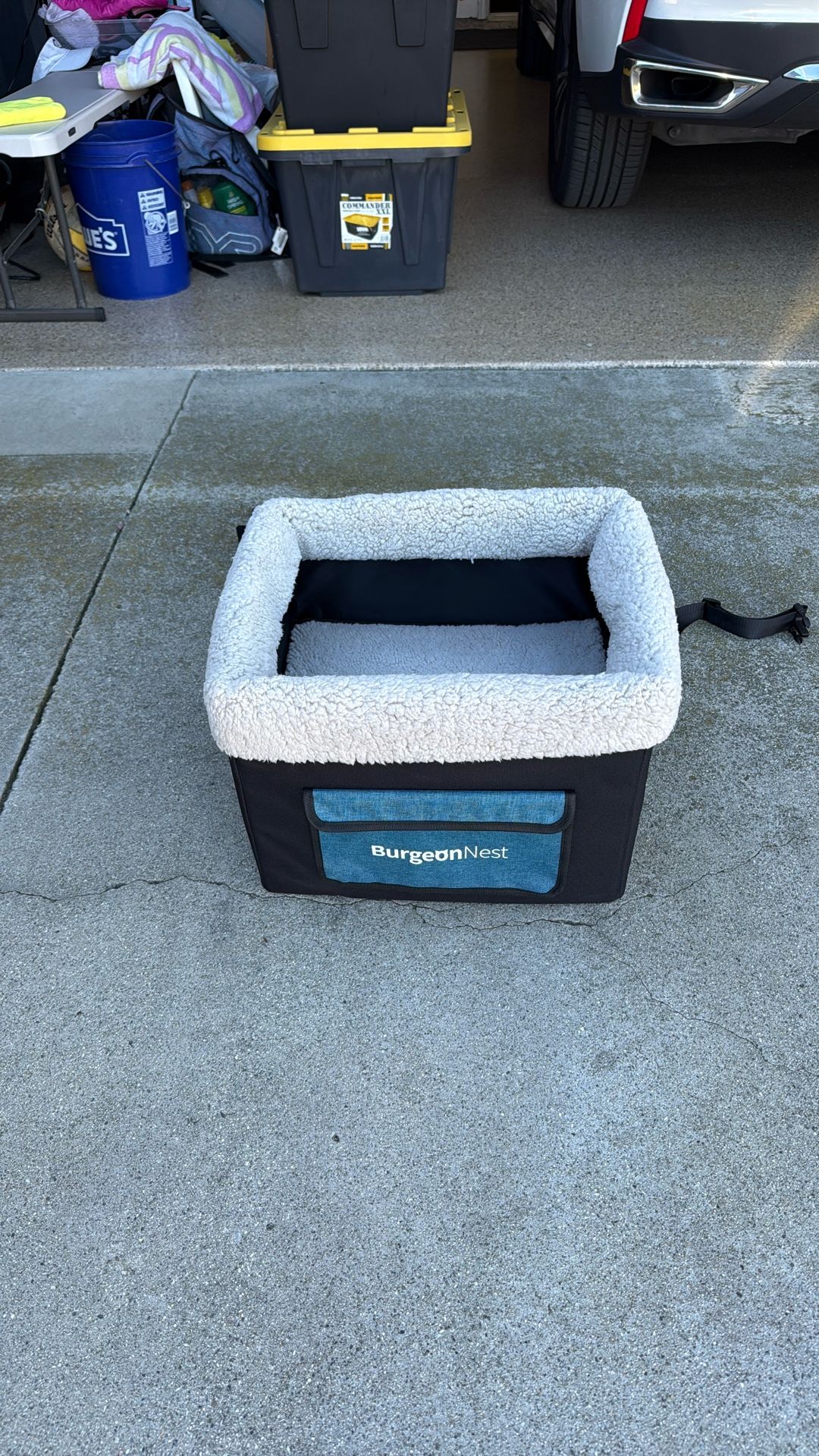 BurgeonNest Dog Car Seat / Booster – Clean, Like New” secures your pet for car rides 18” x 14” x 12”