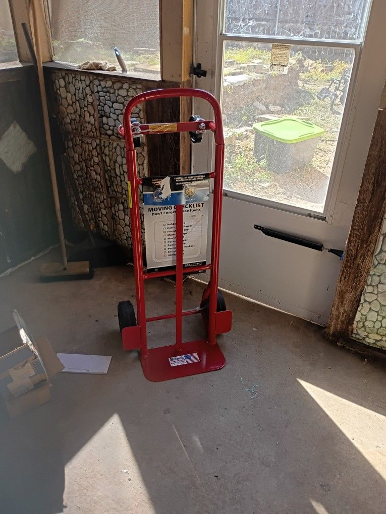 This dolly is brand new weight is 600 pounds 2-wheel hand truck to 4 wheel platform cart 8 " Puncture- Proof tires ,they will never go flat