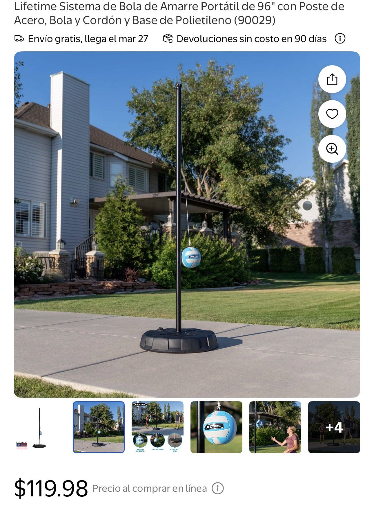 Lifetime Sistema de Bola de Amarre Portátil de 96" con Poste de Acero, Bola y Cordón y Base de Polietileno