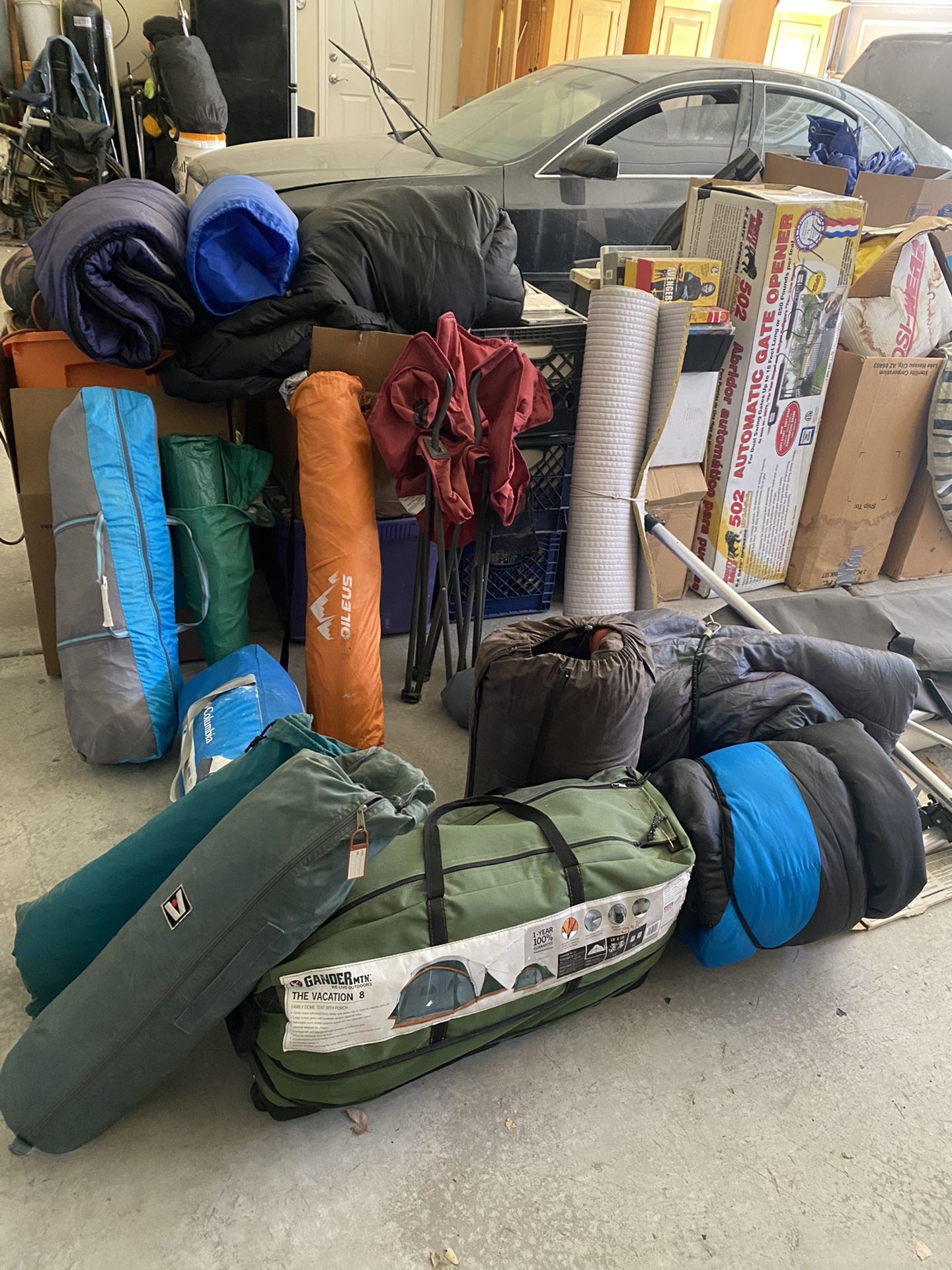 Misc. stuff camping for sale.. anywhere from 10.00 to 45.00 …. Tent 85.00 -sleeps 8 / new price was 199.00 ….bags, from 10 to 35.00 ( high quality) , small tents 25.00 … etc. Columbia 5 - tent , 55.00/ new was 119.00