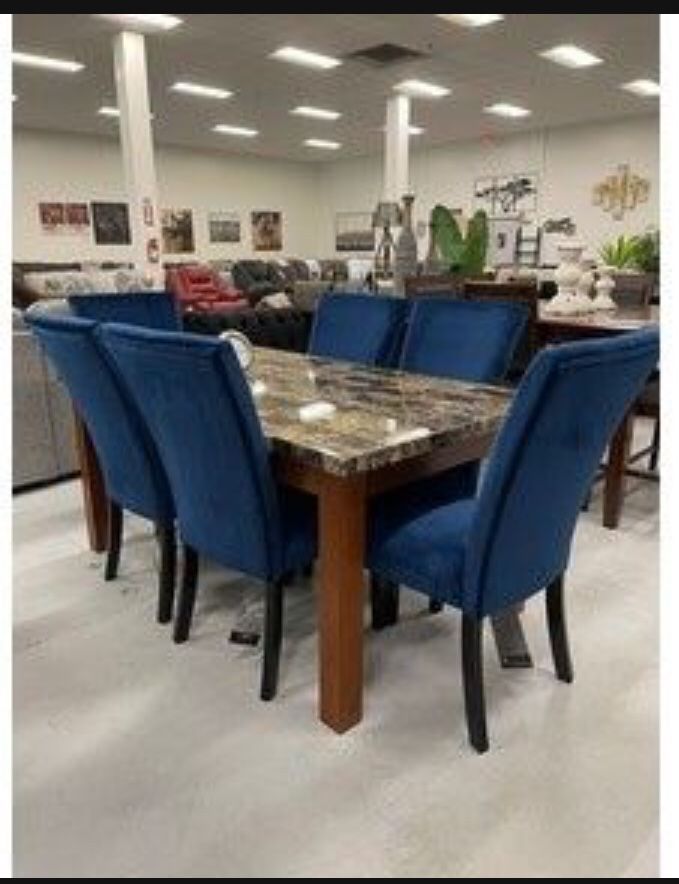 Marble Rectangular Dining Table and Blue Velvet Chairs| Special Combination π In Stockβ Fastest Delivery π