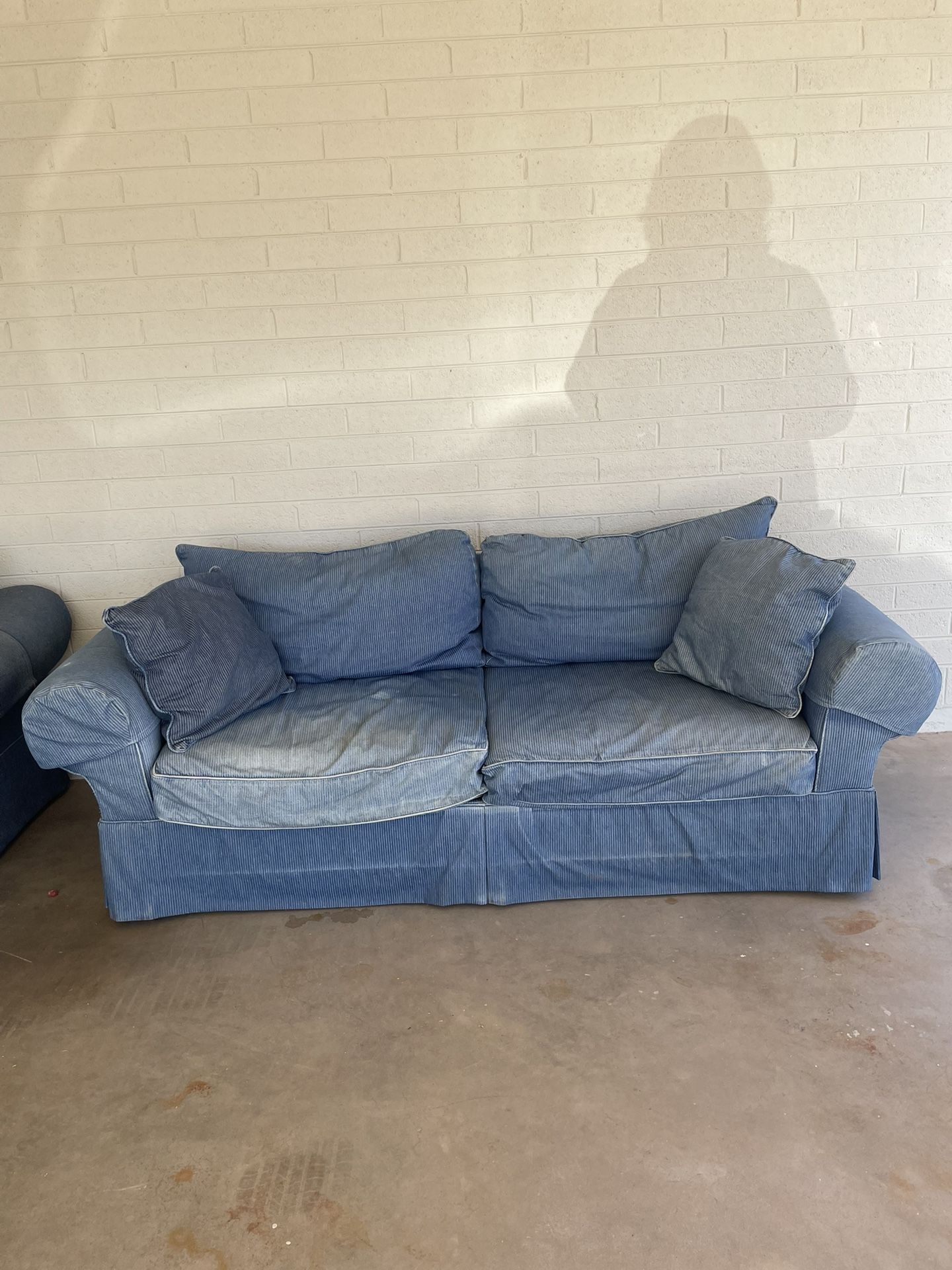 Denim Stripe Sofa And Over Size Chair W/Ottoman