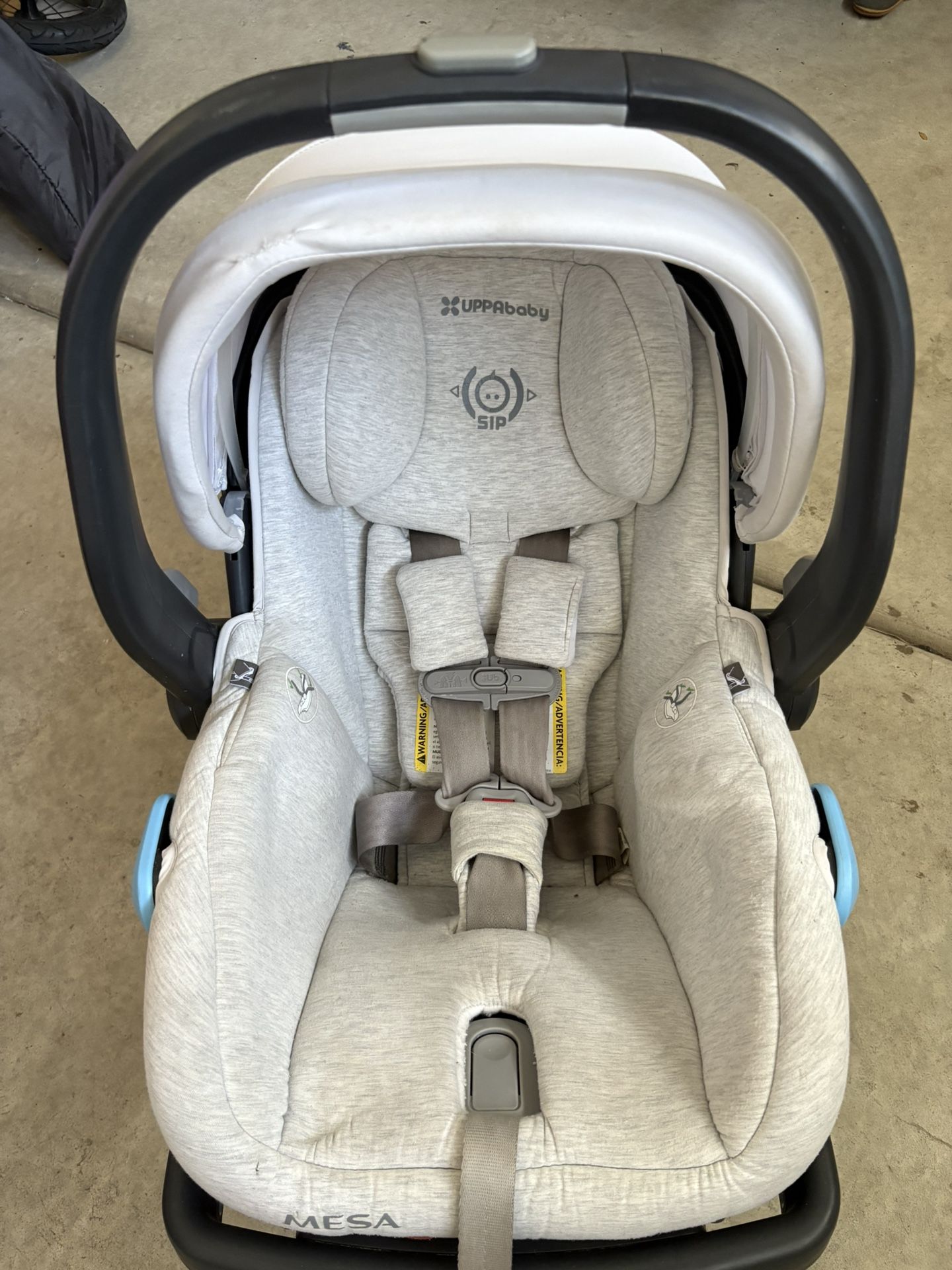 Great condition, used car seat. Stitching on top of canopy repaired a small tear. Expiration date 11/2028. Comes with 1 base. -Bassinet also available, separately. $100 Specifications: Approximately 0–1 years Suitable 4-35 lbs and up to 32″ in height (whichever comes first) Car Seat dimensions: 25.8” L x 17” W x 23” H Car Seat on base dimensions: 28” L x 17” W x 25” H Car Seat base-only dimensions: 20.8” L x 14.5” W x 9.8–12.8” H (height of base in lowest to highest positions) True weight: Car Seat 9.9 lbs Base 9 lbs