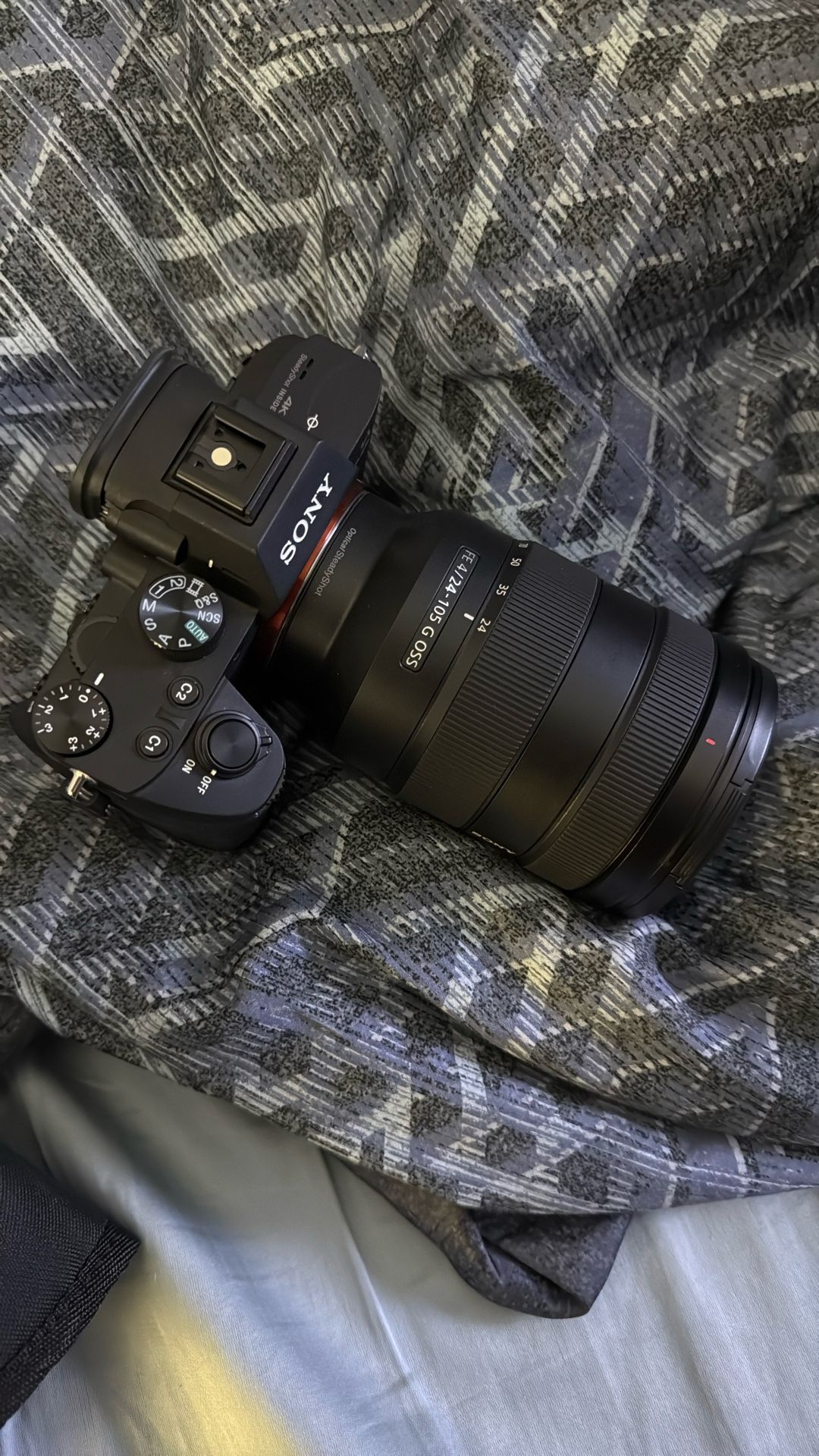 Sony FE 4/24 -105 G OSS- Bundled together with backpack , 2 batteries rechargeable battery pack and Rode Video mic pro