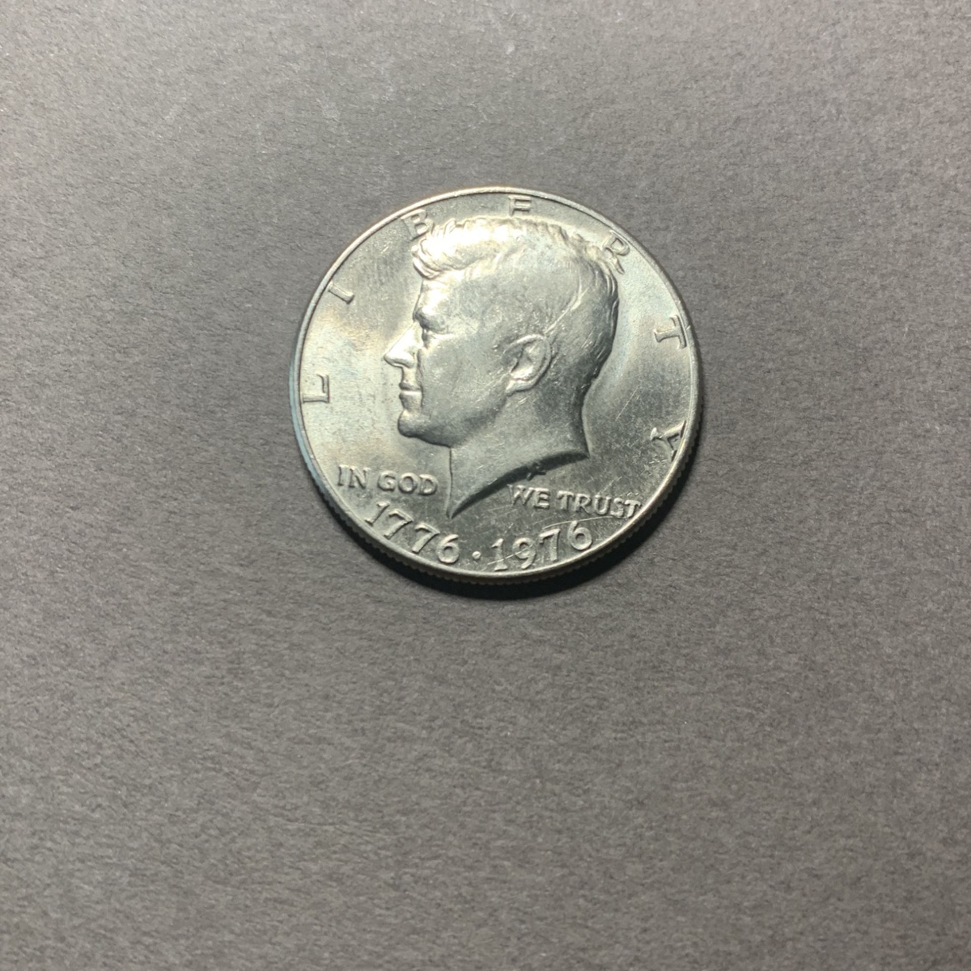 This 1976 Kennedy Half Dollar Clad MS70 coin has never been used and in new condition. Coin based off of the 70 number given to the state of the coin being “Mint State 70.”