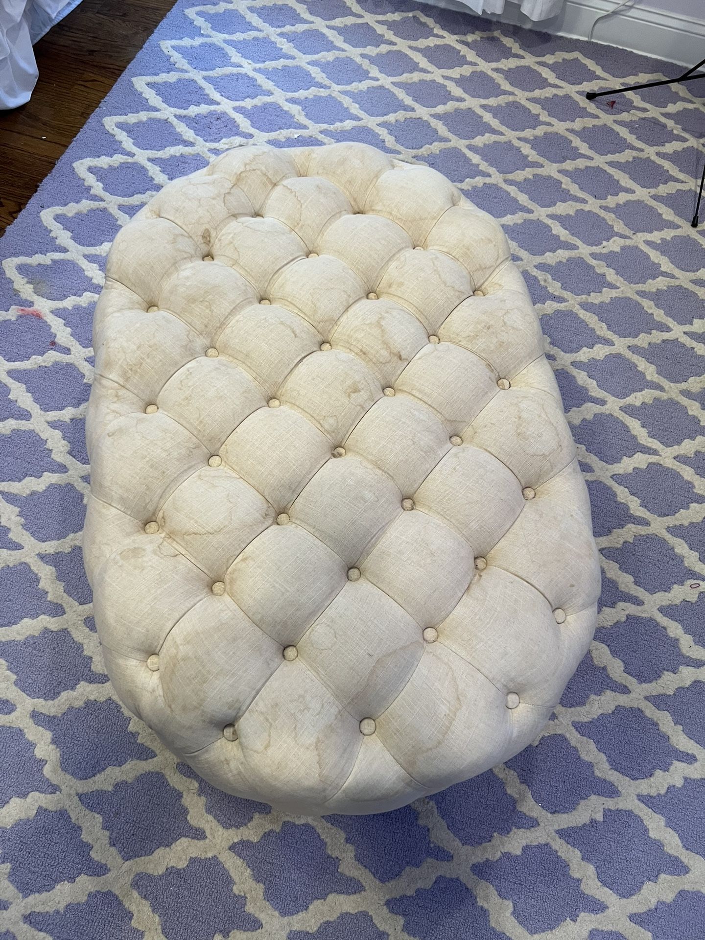 Free ottoman has some stains on it . Could probably be removed with a deep shampoo