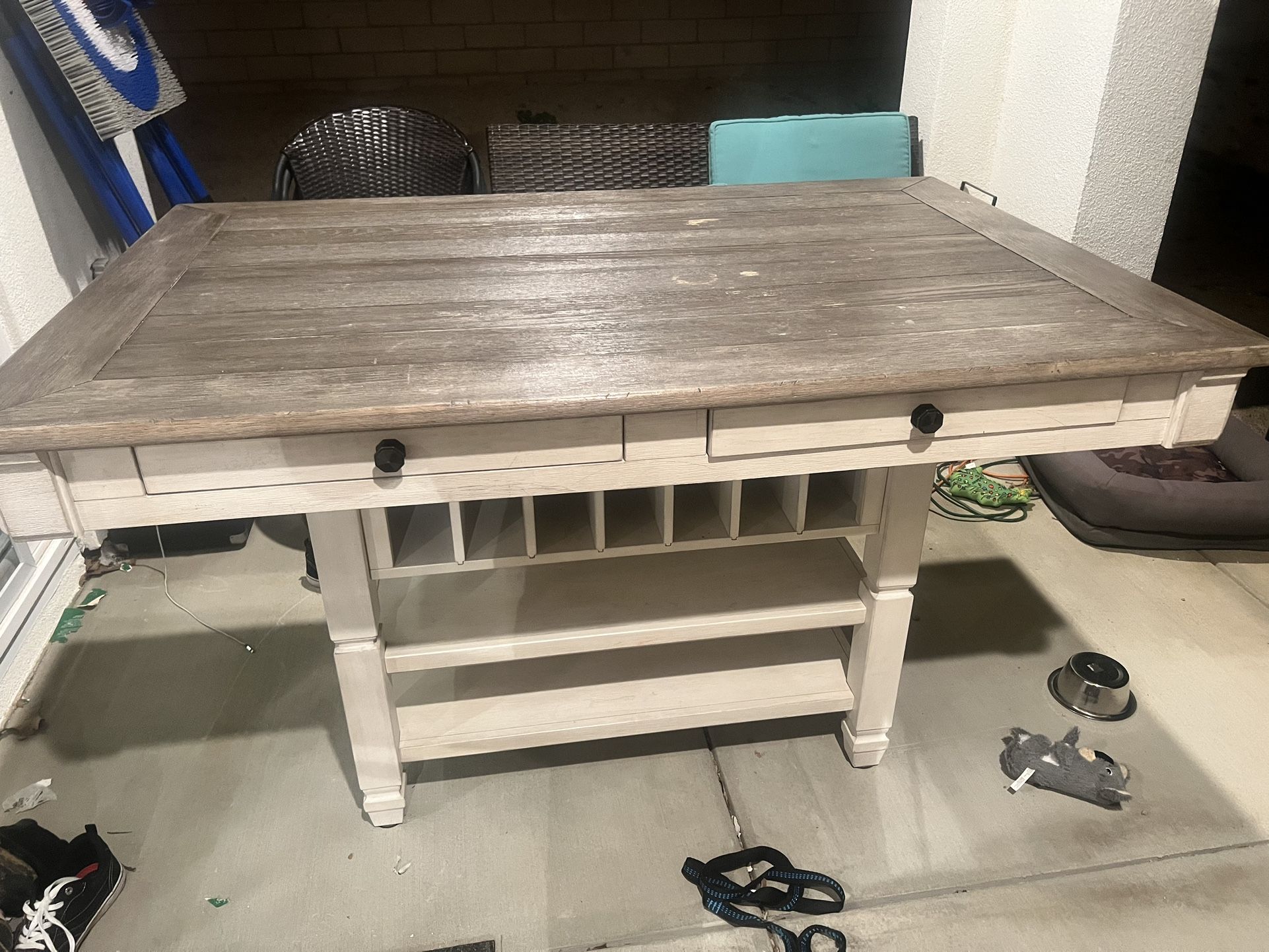 Dining room table used has minor wear and tear. See pictures. H36” x W40” x L60”