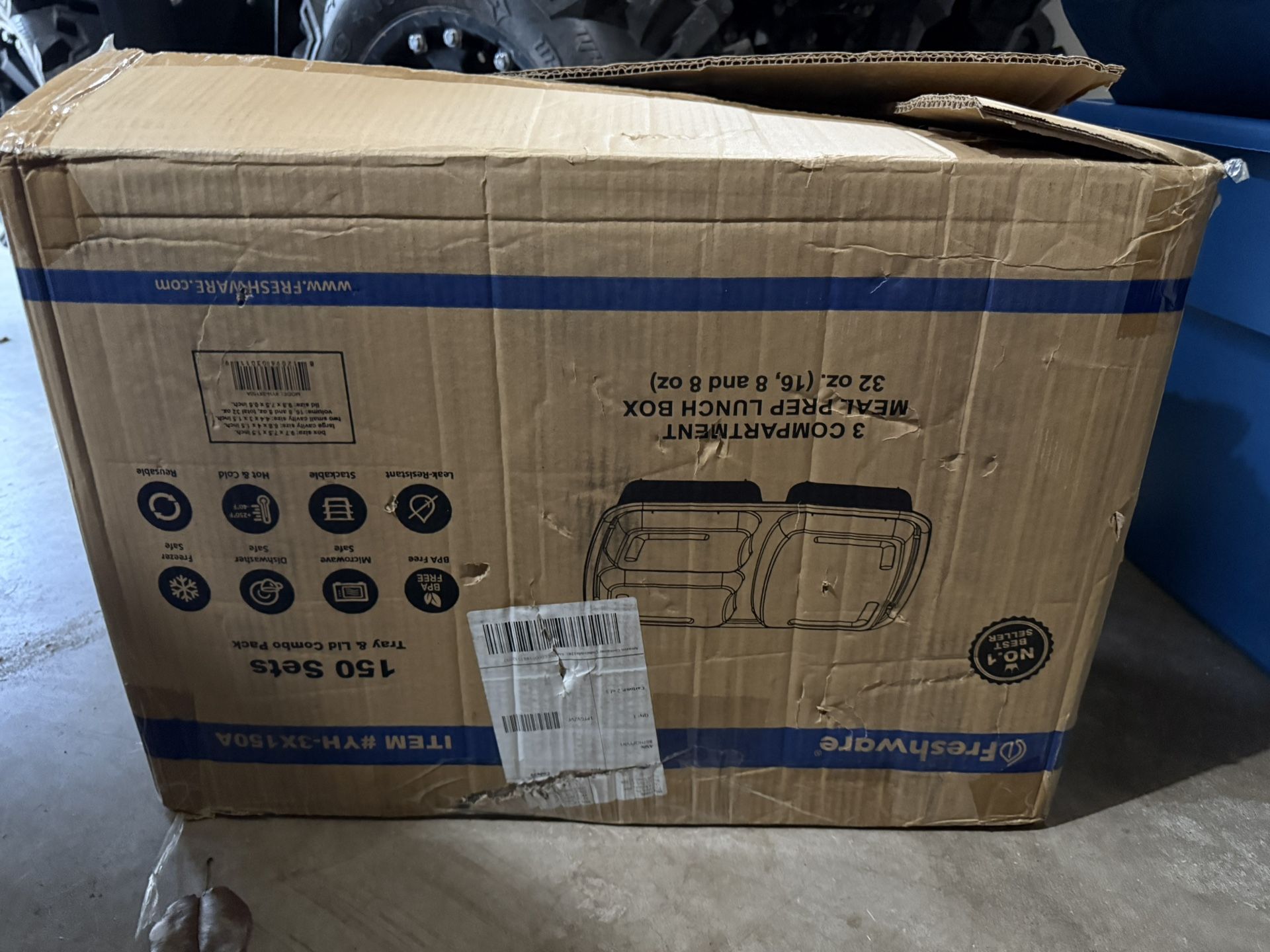 New Freshware 3 Compartment Meal Prep Containers 150 Count