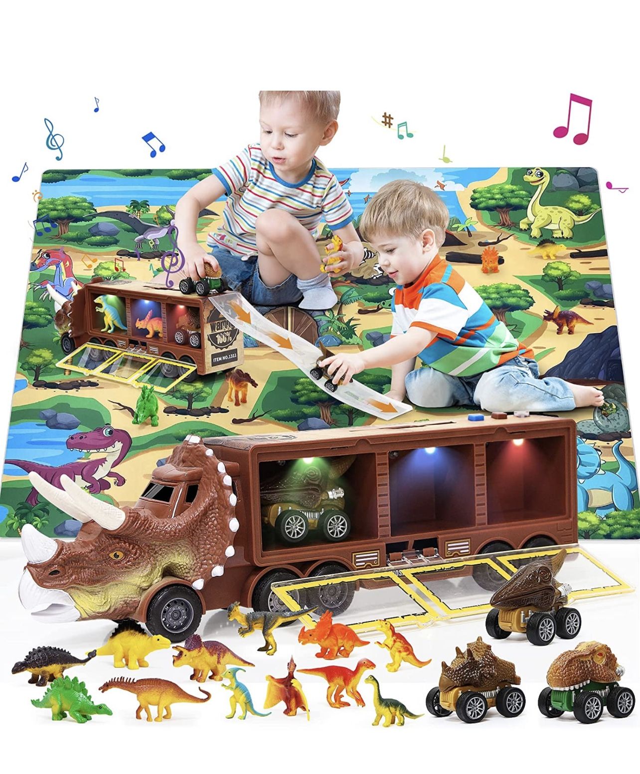Dinosaur Toys for Kids 3-5, Dinosaurs Transport Car Carrier Truck Toy with Lights Music & Dinosaur World Map -The Best Dinosaur Toy for Boys & Girls Ages 3,4,5,6,7 Years Old, Dinosaur Games with T-Rex
