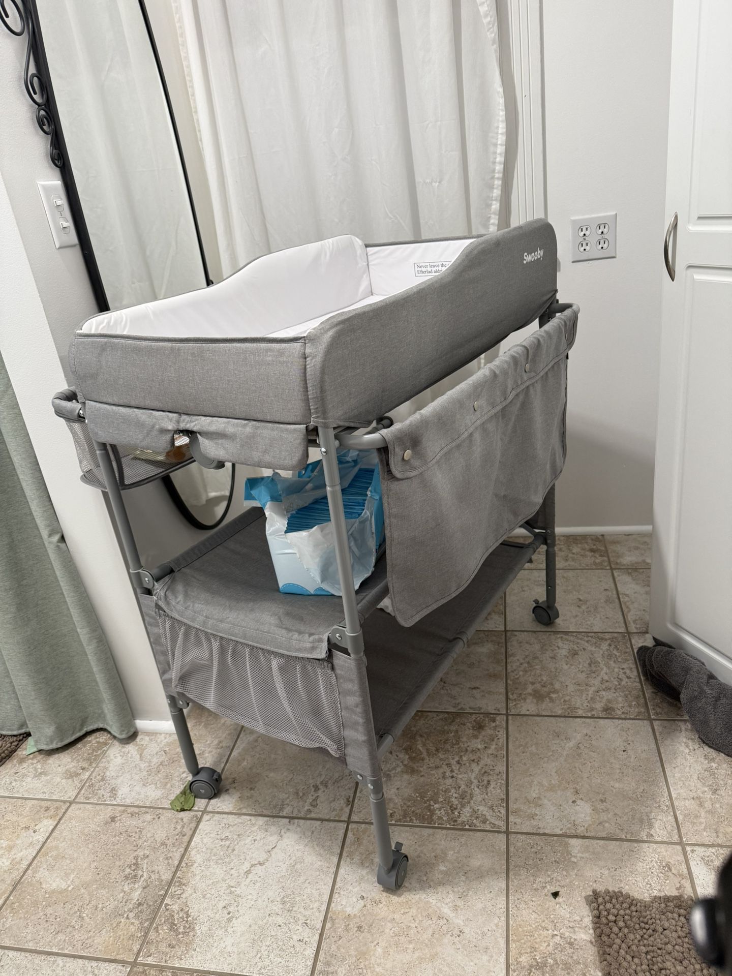 Portable changing table. Only used for the first 4 months. Wheels and all parts are on it. Lightly used. $80