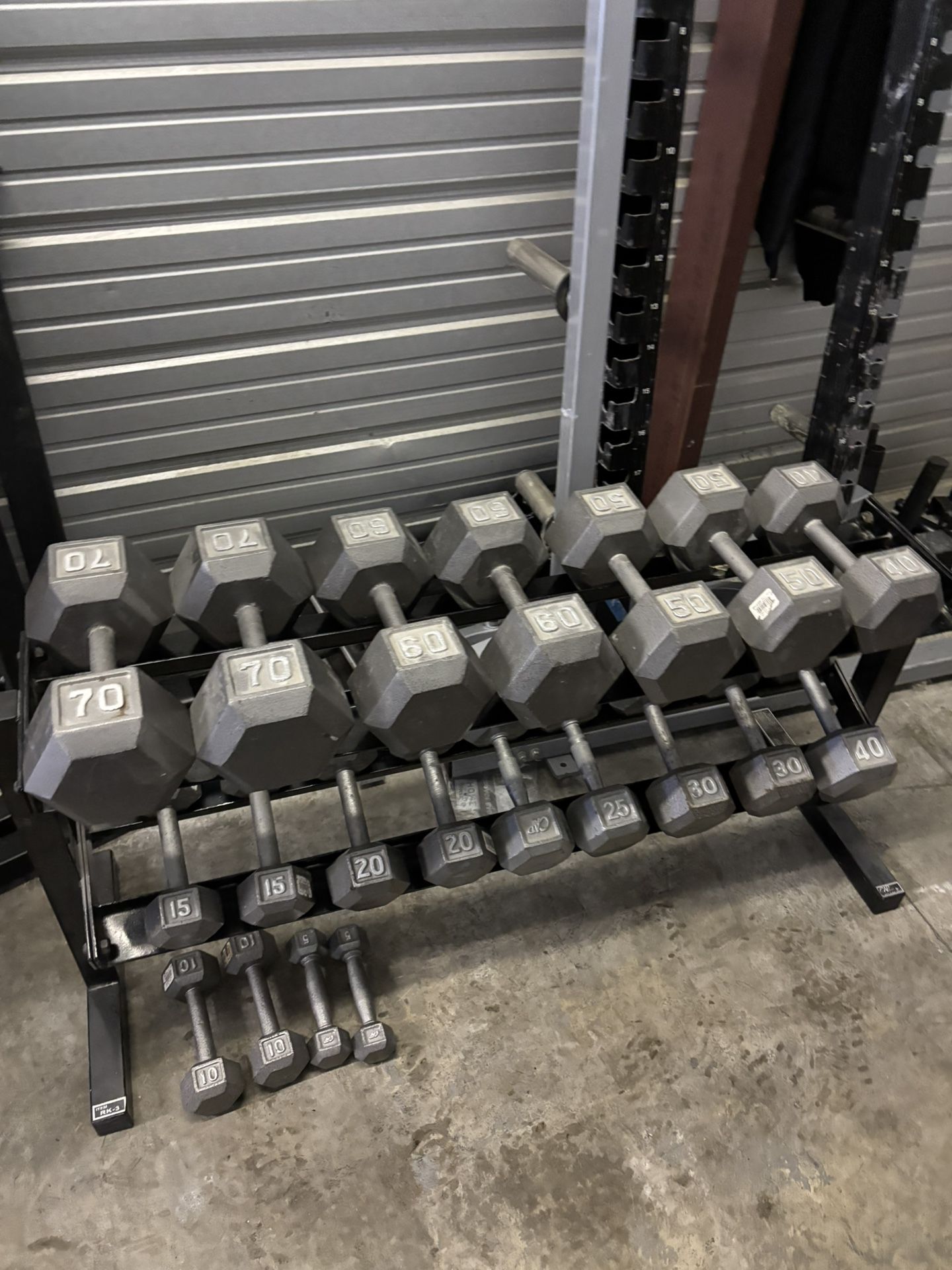 2x70 lbs 2x60 lbs 2x50 lbs 2x40 lbs 2x30 lbs 2x25 lbs 2x20 lbs 2x15 lbs 2x10 lbs 2x5 lbs Rack storage include $660 firm Check listing for more gym stuff Keywords Weights gym dumbbells exercise squat rack weight bench dumbbell concept 2 rowing machine rower spin bike rogue crossfit power rack rogue bowflex water rower echo bike airdyne assault fitness treadmill elliptical bowflex max trainer Titan rogue