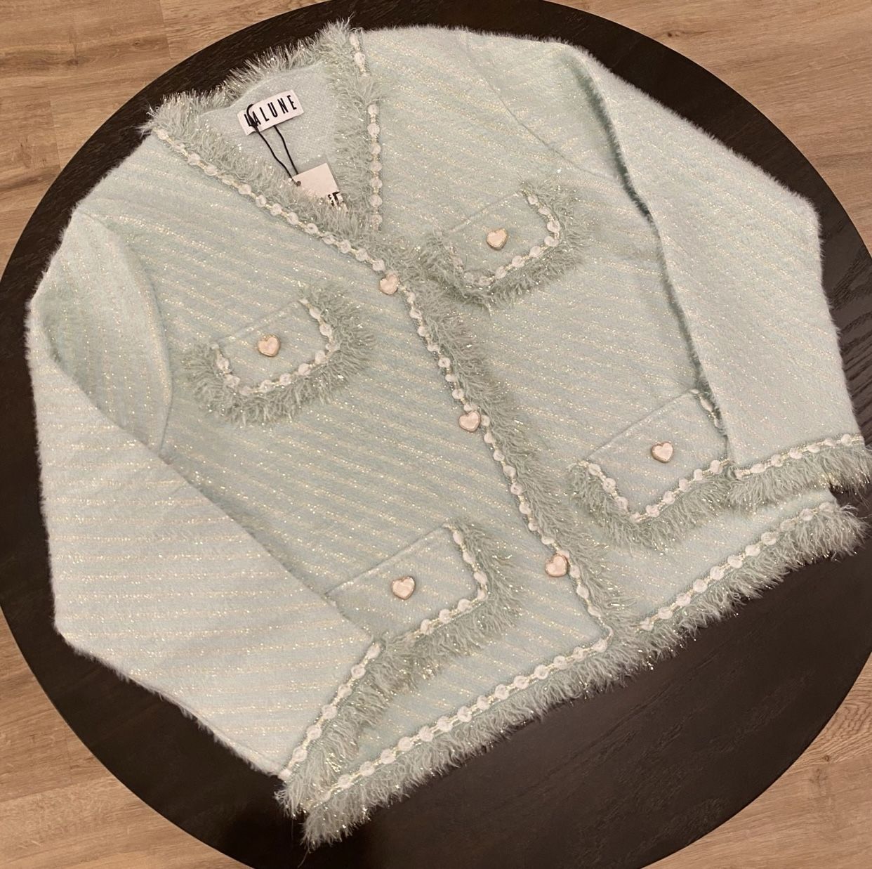 LA LUNE Elegant Cardigan with heart shape buttons, shimmery detailed and soft materials. classic style design cardigan with great quality for everyday wear. Give you the Classic & elegant style look. ONE SIZE New with tag Mint Color Made in Thailand. Measurements: P2P 19.5 inches Front length 23 inches Sleeve length 21 inches It fits from size S to M ( petites to regular fits) The material is stretchy. ✿ εї ✿ ✿ ✿ εїз ✿ ✿ εї ✿ ✿ ✿ εїз ✿ ✿ ✿ Welcome to bundle. I accept reasonable offer. Feel free to ask any questions before purchase. All sales are Final! No return/ No Refund! Thank you!