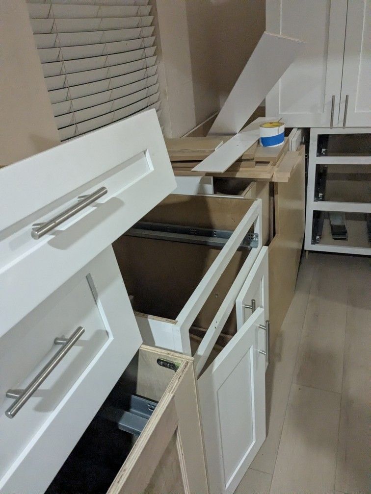 Shaker style white kitchen cabinet top and bottom real wood in excellent condition $150 each