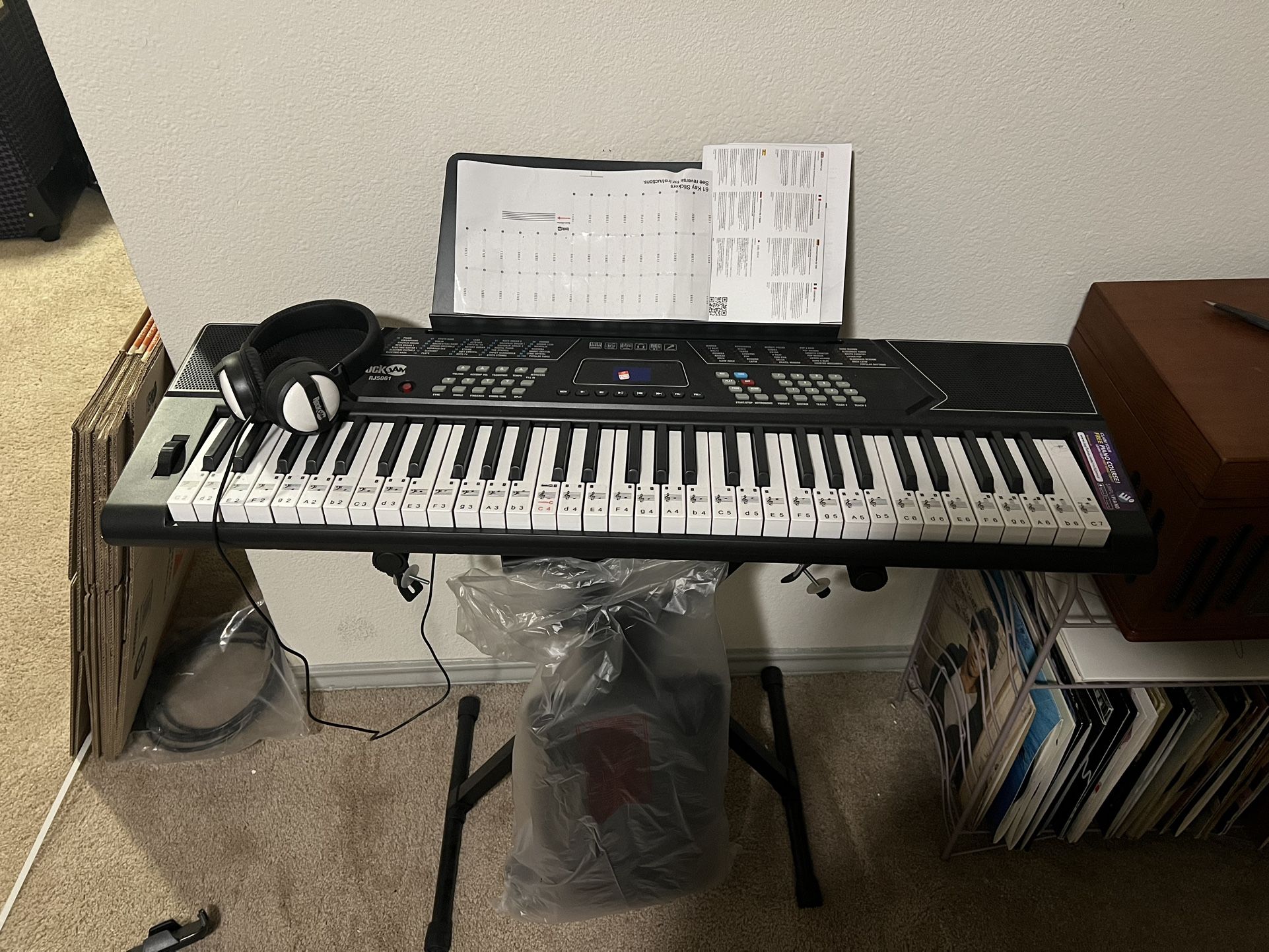 RockJam keyboard. Used once. Comes with headphones and bench.