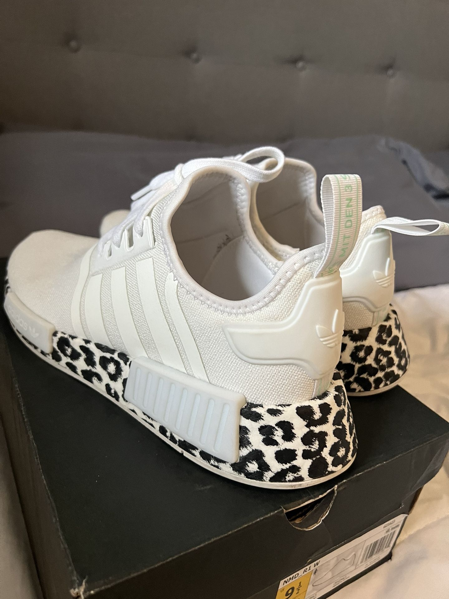 I have this gorgeous white and animal print in the bottom of the shoe original adidas nmds size 9.5 women and 7.5 men’s, only worn 4 times like new. Asking $70 OBO