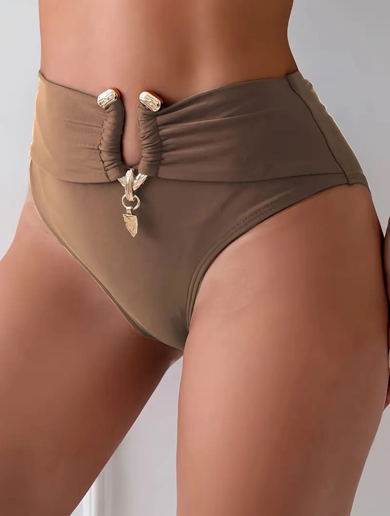 NWT AD 1pc Women'S High-Waisted Bikini Bottoms with Metallic Accents Coffee XL