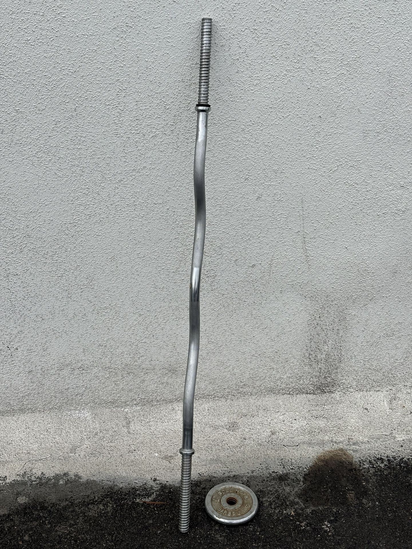 Curl bar and one weight plate 47” long Good Condition $50 Check my other offers