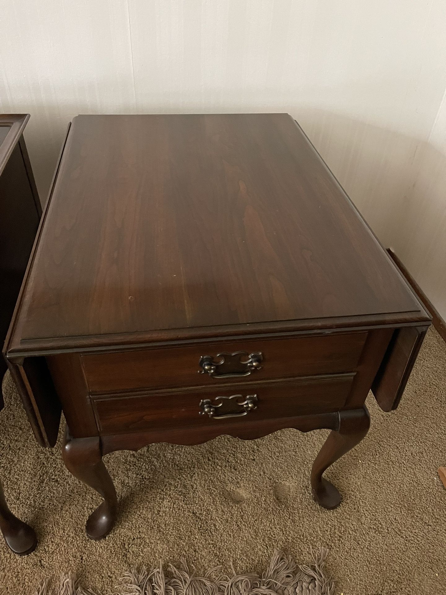 Gorgeous quality vintage Queen Anne style side table from one owner home in great condition especially for its years. Solid and quality wood construction that can be used as an end table, or bedside table. Great size flexibility with drop leaves that extends the size easily! 27.5” deep x 22” tall x 19” wide and 36” wide with leaves up. $245 (Same or very similar piece is $895 on Chairish)