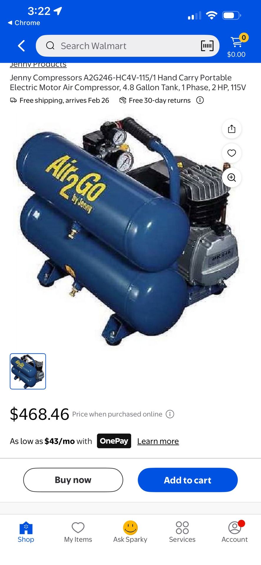 Lightly used 2 hp compressor. Sell new for about $500, looking to get $200.