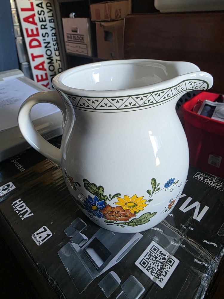 Vintage Ceramic Pitcher Floral Design Jug MidCentury Modern Hand Painted