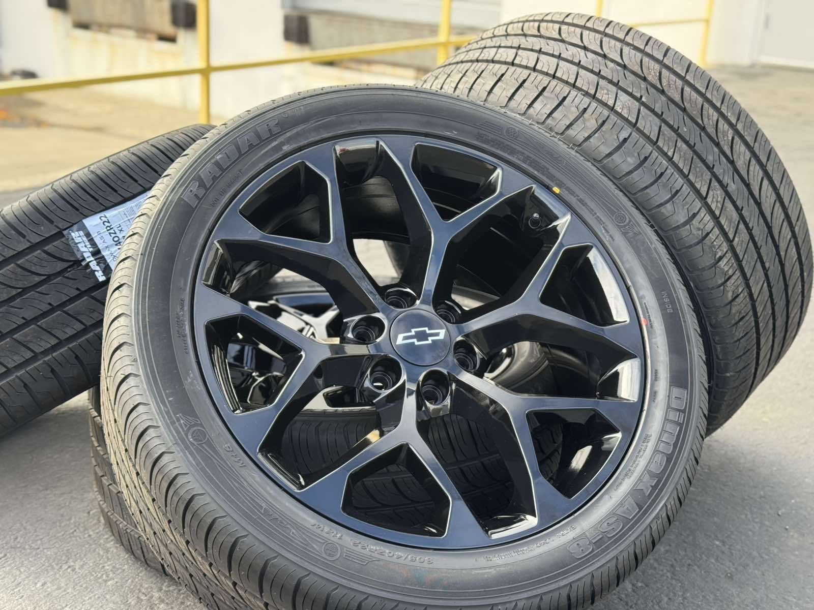 22” Black Wheels Rims Tires GMC Sierra Yukon Denali Chevy Chevrolet Silverado 1500 Tahoe Suburban Cadillac Escalade Dodge Ram