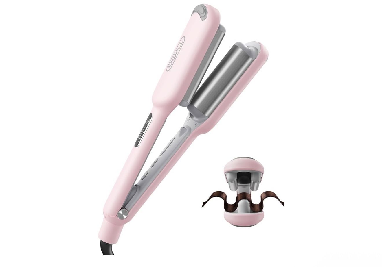 Curling Iron Hair Crimper Waver - TYMO ROVY Beach Waves Curling Wand, Ionic Deep Waver Hair Curler Tool with Ceramic 3 Barrel for Women, Dual Voltage, Anti-Scald, Easy to Use, Pink, 1.25 Inch