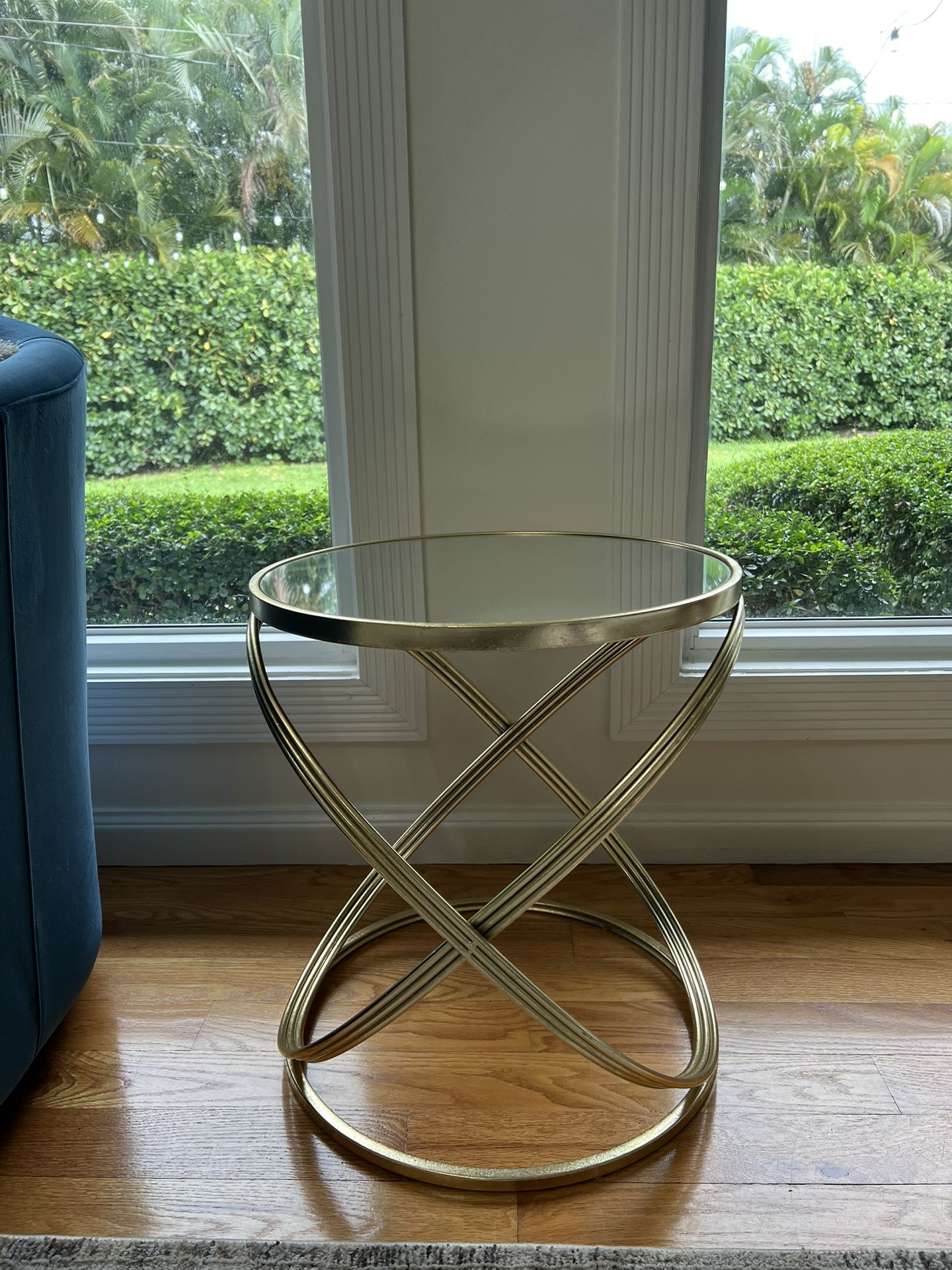 Gold and mirror glass top in very good conditions. $30.00